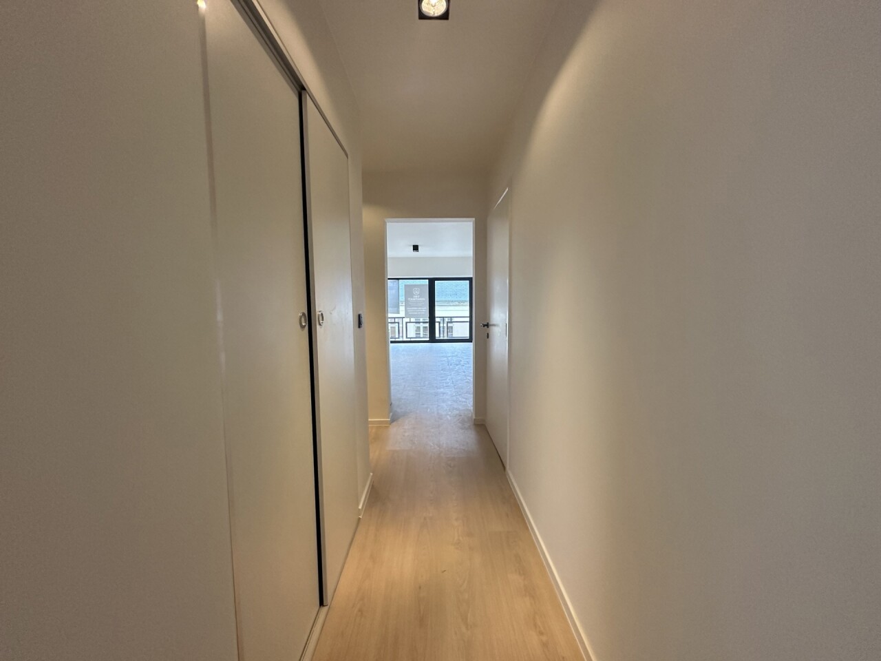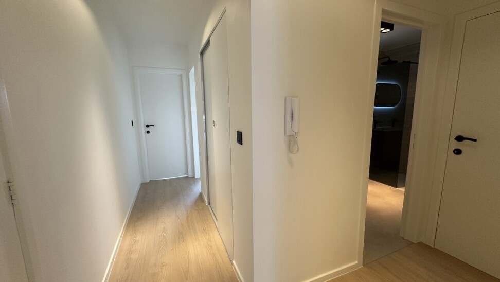 Achteraan het appartement bevinden zich twee slaapkamers: een ruime master bedroom van ca. 15 m² en een tweede kamer van ca. 6 m², ideaal als kinderkamer, dressing of bureau.