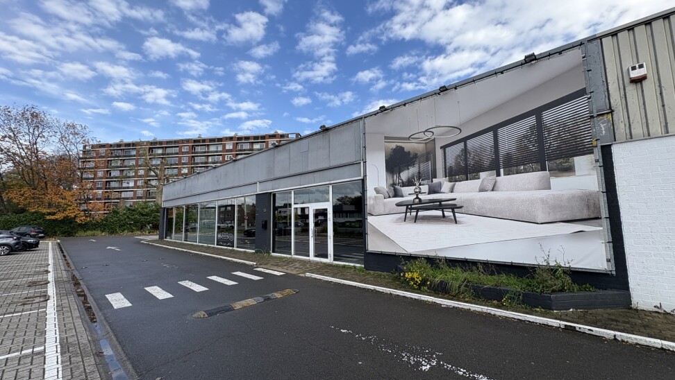 Deze handelsruimte van ongeveer 1.000 m² beschikt over een twintigtal parkeerplaatsen en is gunstig gelegen aan de drukke Frans Beirenslaan (R11) — de verbindingsweg tussen onder meer Antwerpen, Mortsel, Wommelgem en Wijnegem.