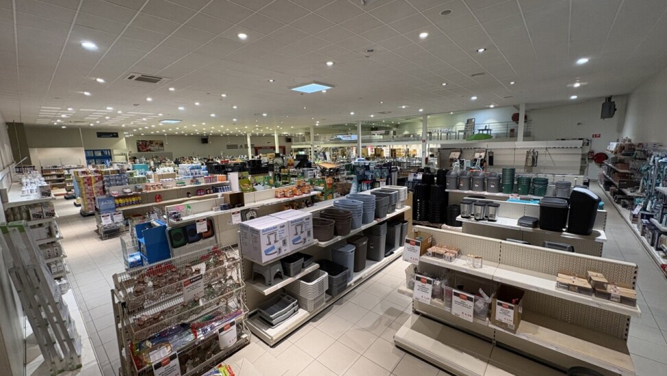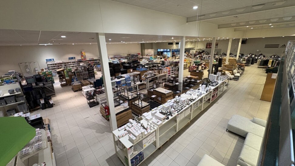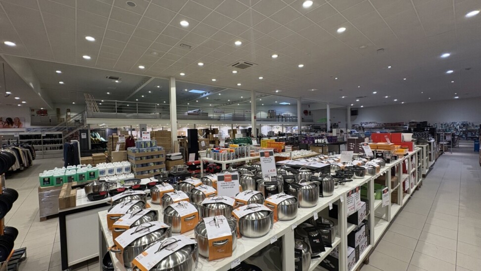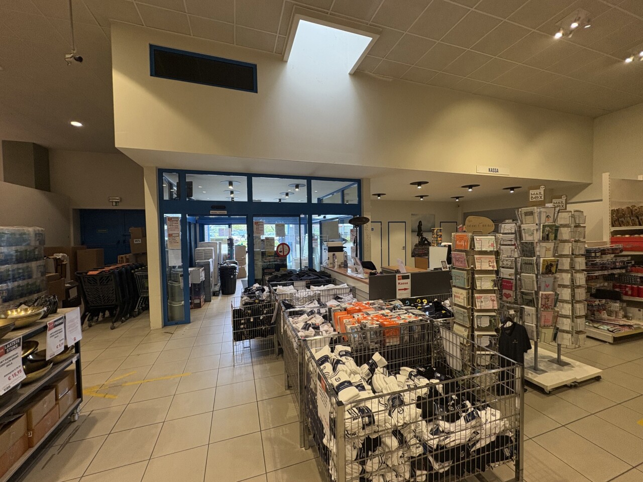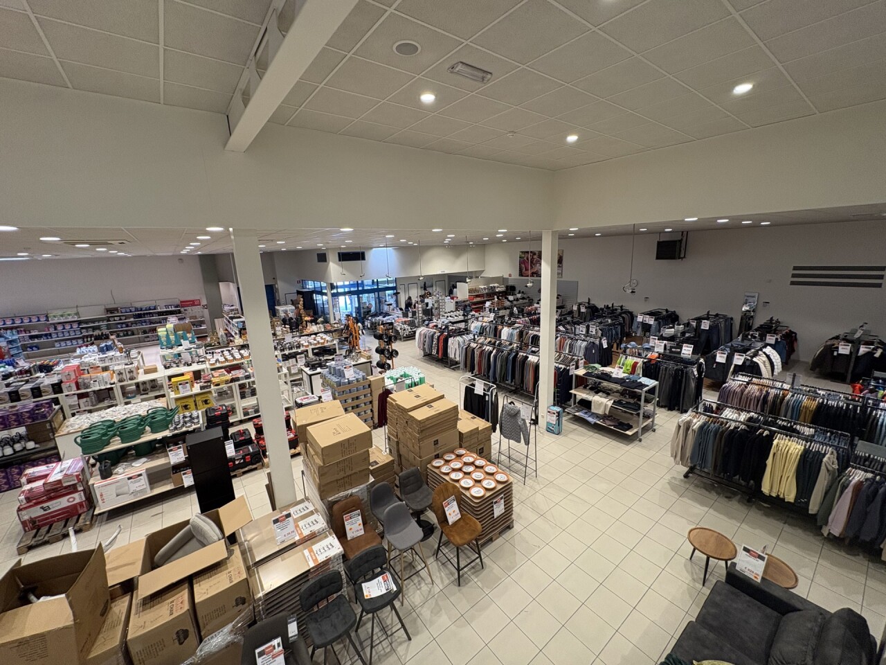 De winkel beschikt over een ingebouwde mezzanine van ca. 240 m², ideaal als extra verkoopruimte of opslag.