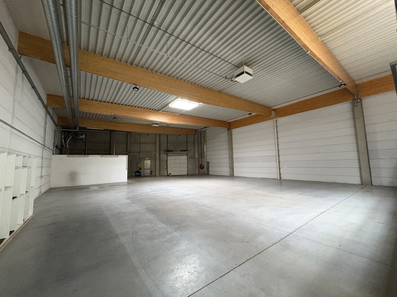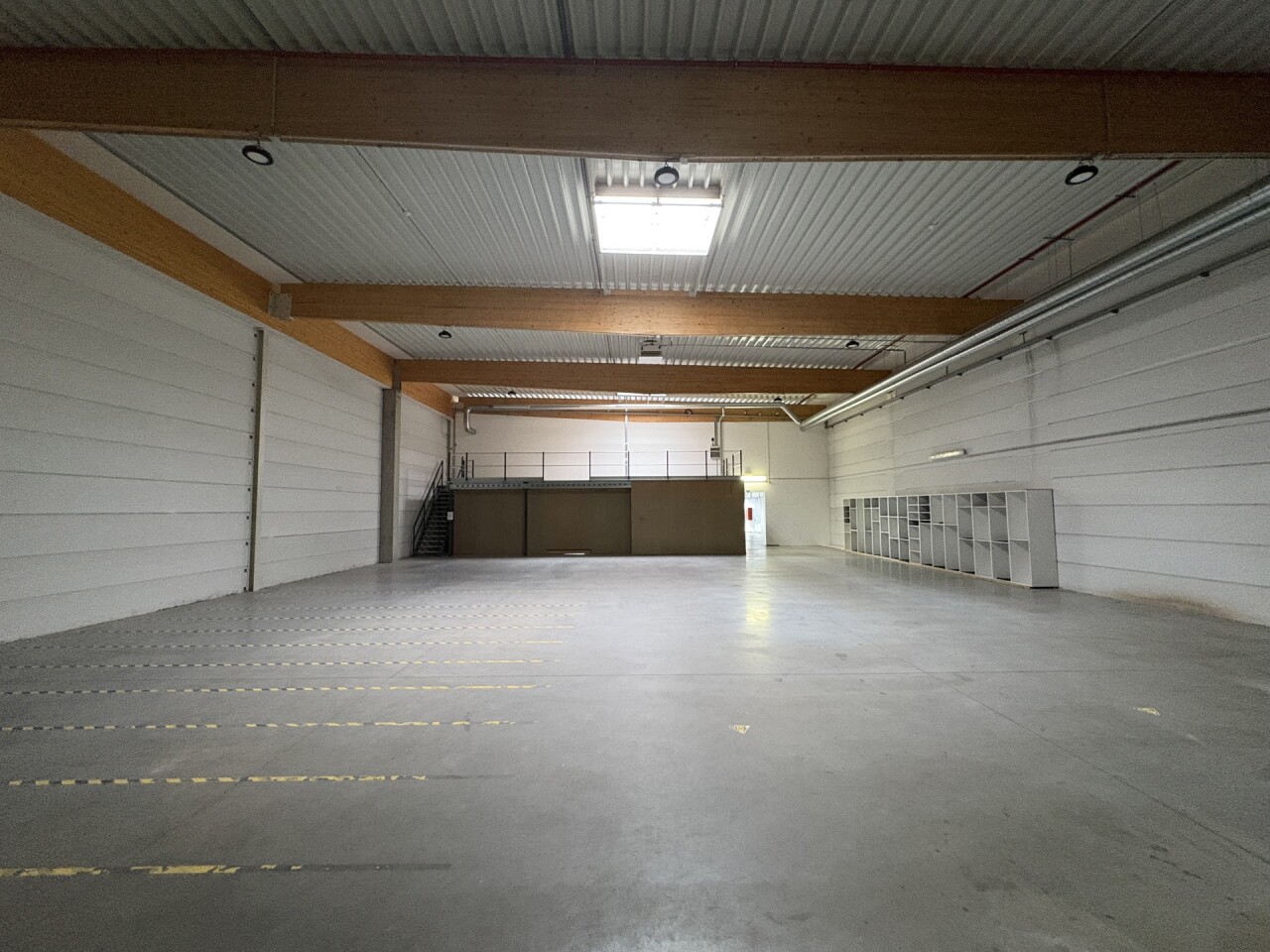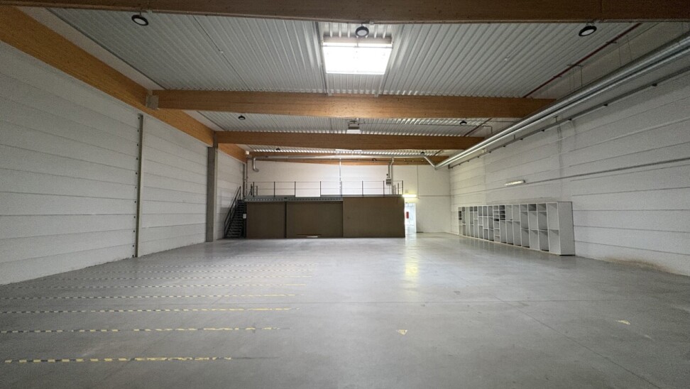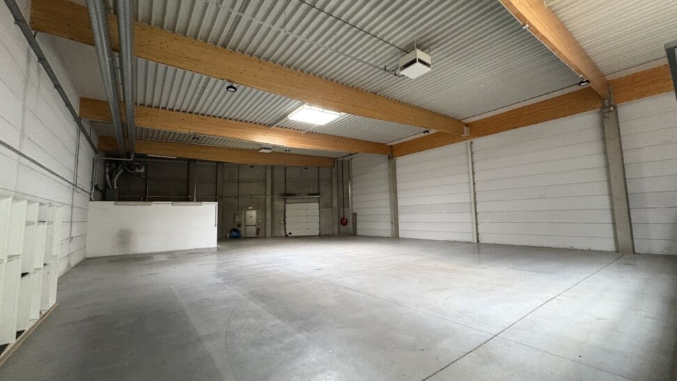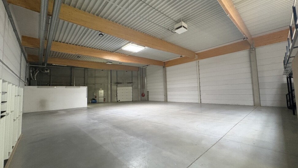Technische gegevens: geen een enkele kolom in het gebouw, gepolierde betonvloer, vrije hoogte 5,70 meter onder de balk, sanitair, automatische schuifdeur, sectionaal poort, airco : warmtepomp, brandluiken,...