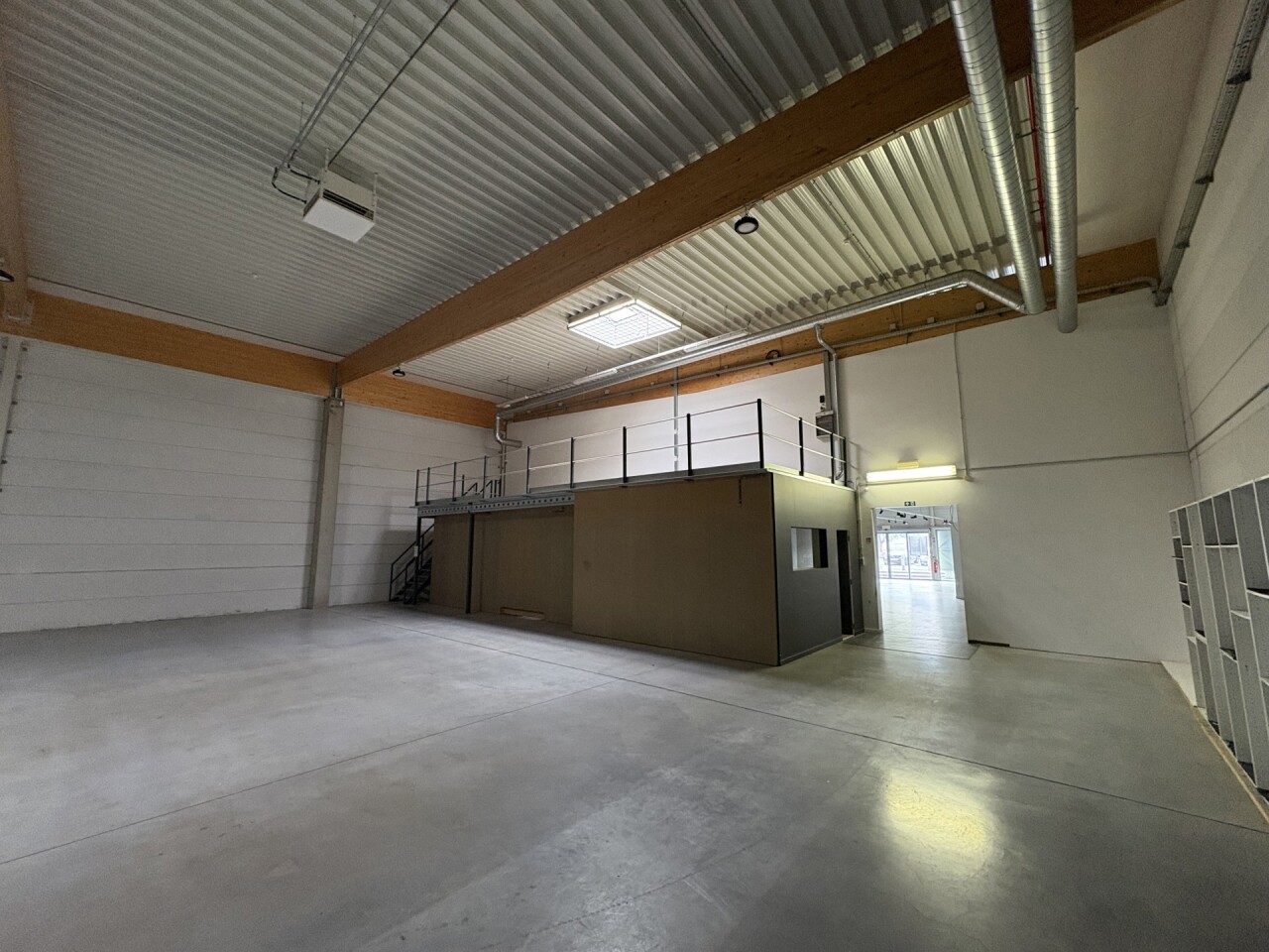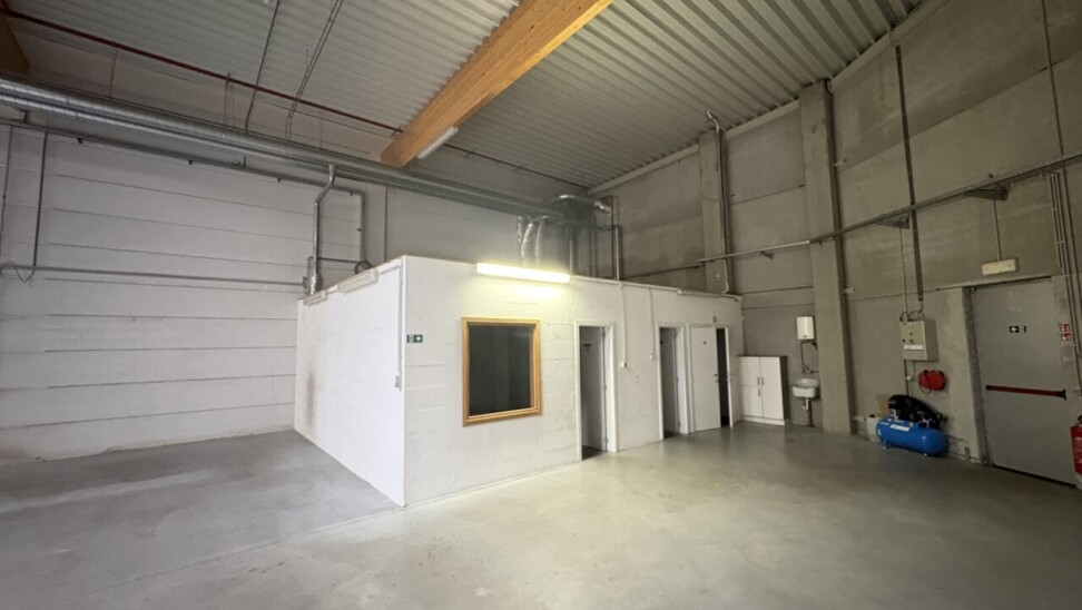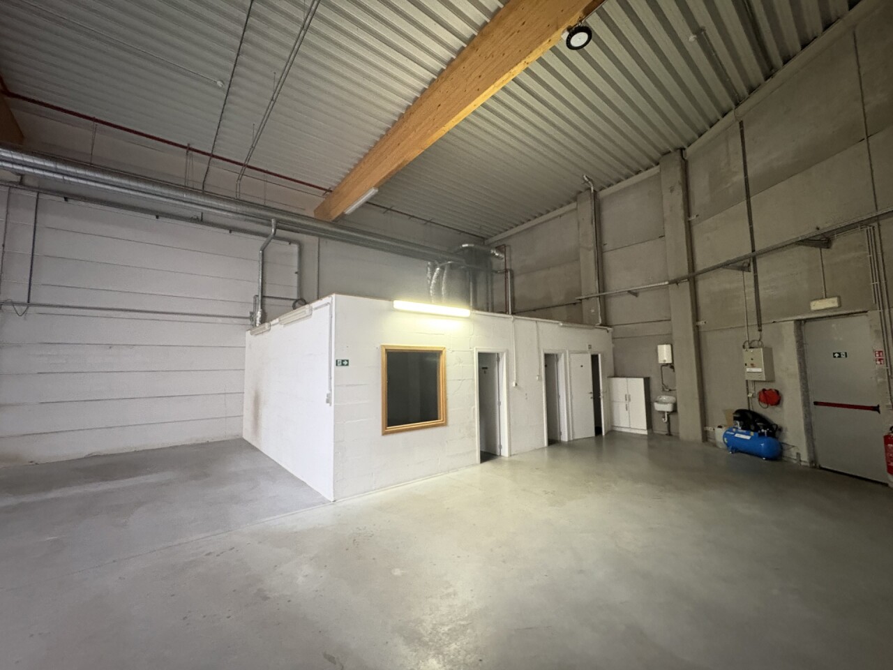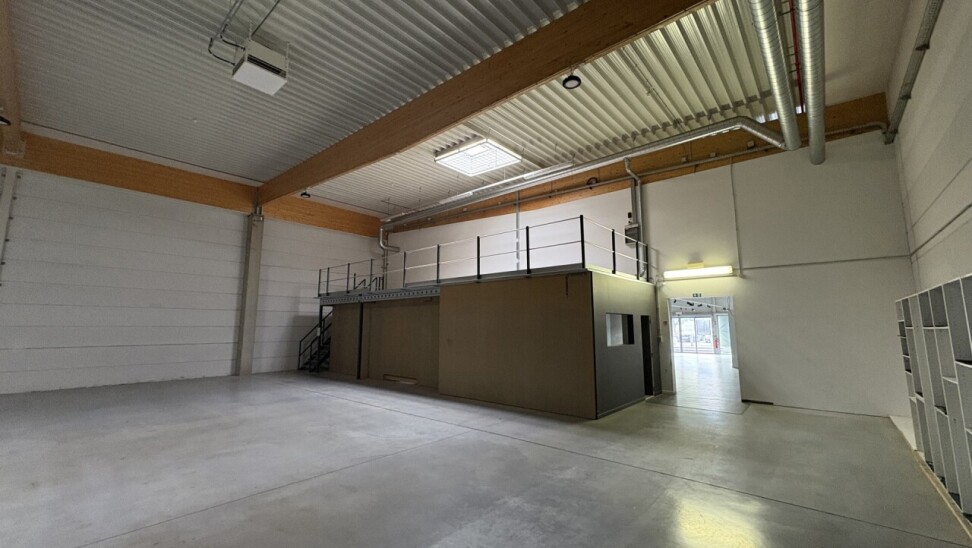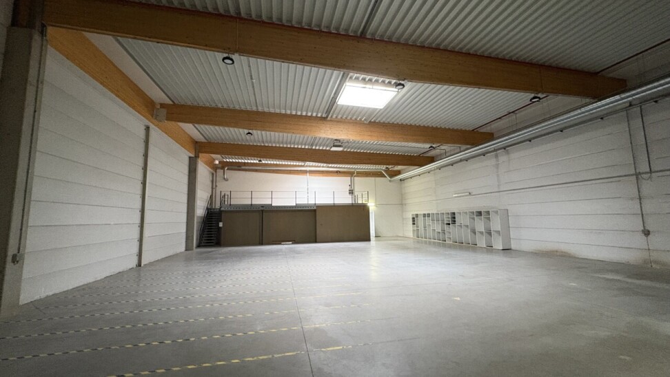 Technische gegevens: geen een enkele kolom in het gebouw, gepolierde betonvloer, vrije hoogte 5,70 meter onder de balk, sanitair, automatische schuifdeur, sectionaal poort, airco : warmtepomp, brandluiken,...