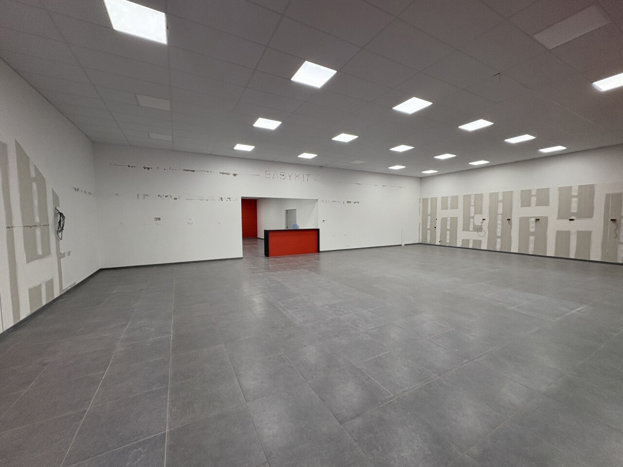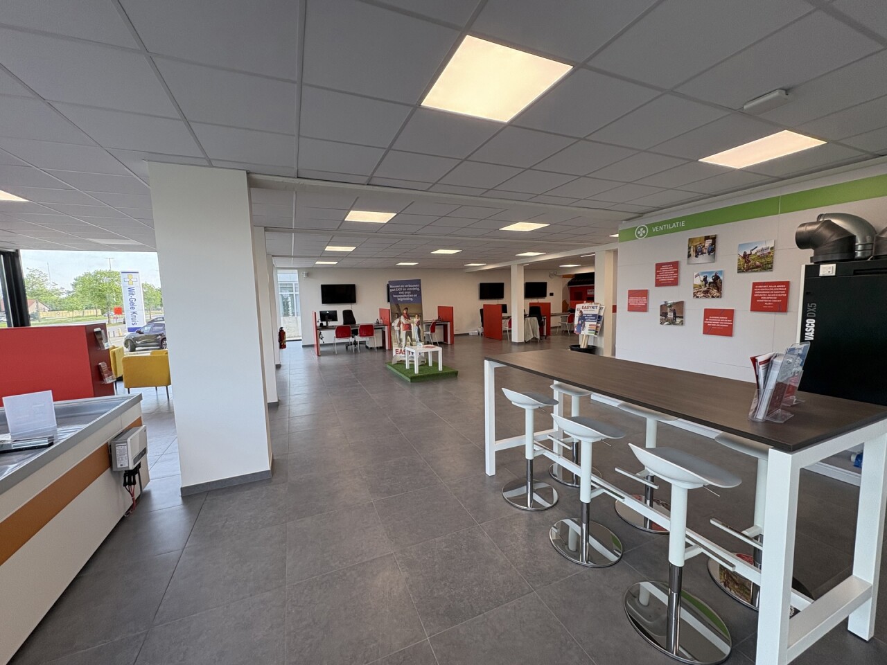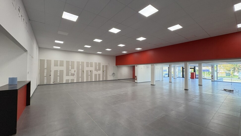De ruimte omvat een ruime toonzaal, opslagruimte met sectionaalpoort, refter en sanitair. De gyproc-wanden tussen toonzaal en opslag zijn eenvoudig te verwijderen voor een open indeling op maat van uw concept. Extra opslagruimte op -1 is beschikbaar als optie (huurprijs op aanvraag).