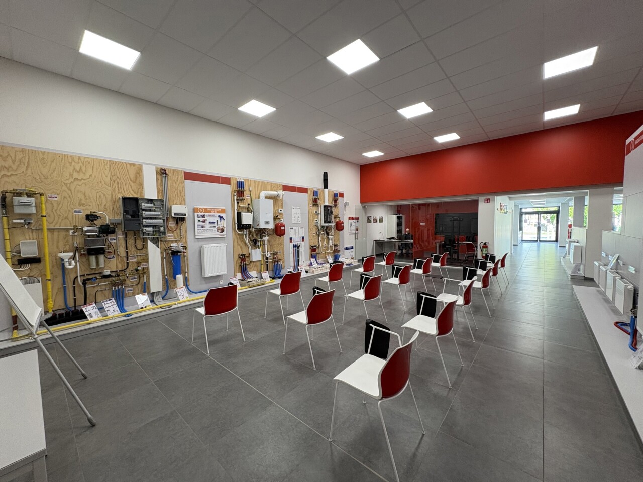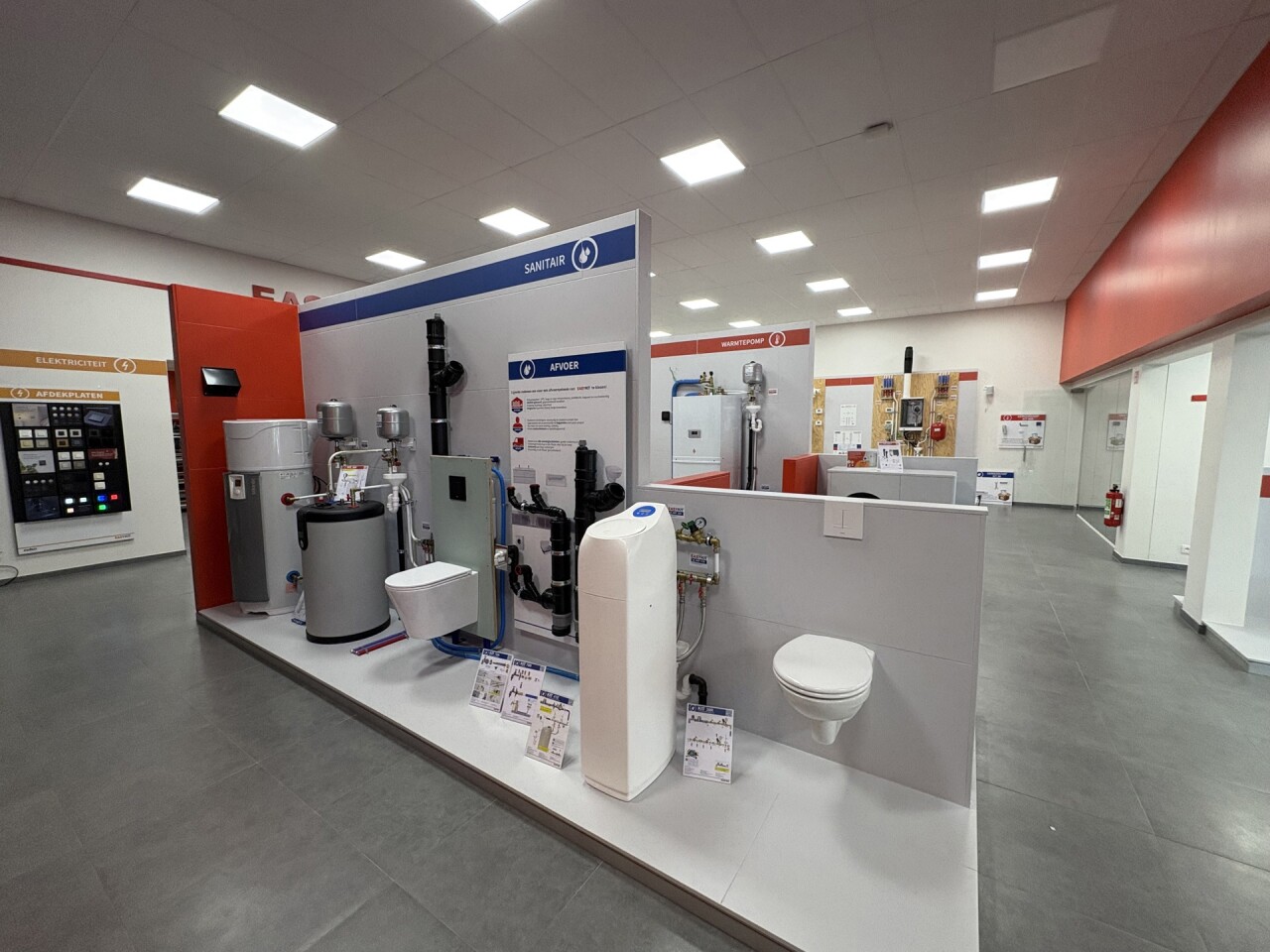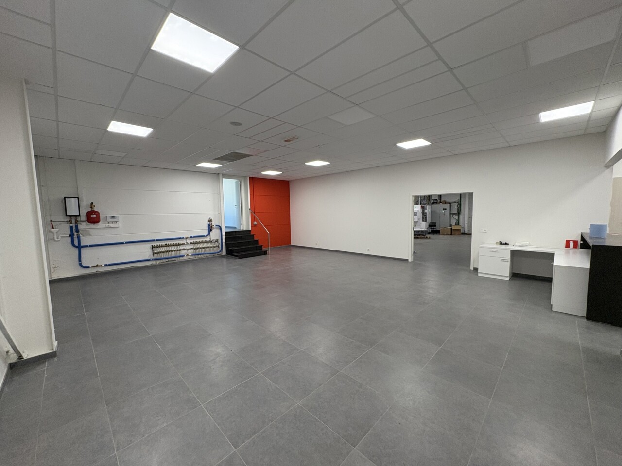 De ruimte omvat een ruime toonzaal, opslagruimte met sectionaalpoort, refter en sanitair. De gyproc-wanden tussen toonzaal en opslag zijn eenvoudig te verwijderen voor een open indeling op maat van uw concept. Extra opslagruimte op -1 is beschikbaar als optie (huurprijs op aanvraag).