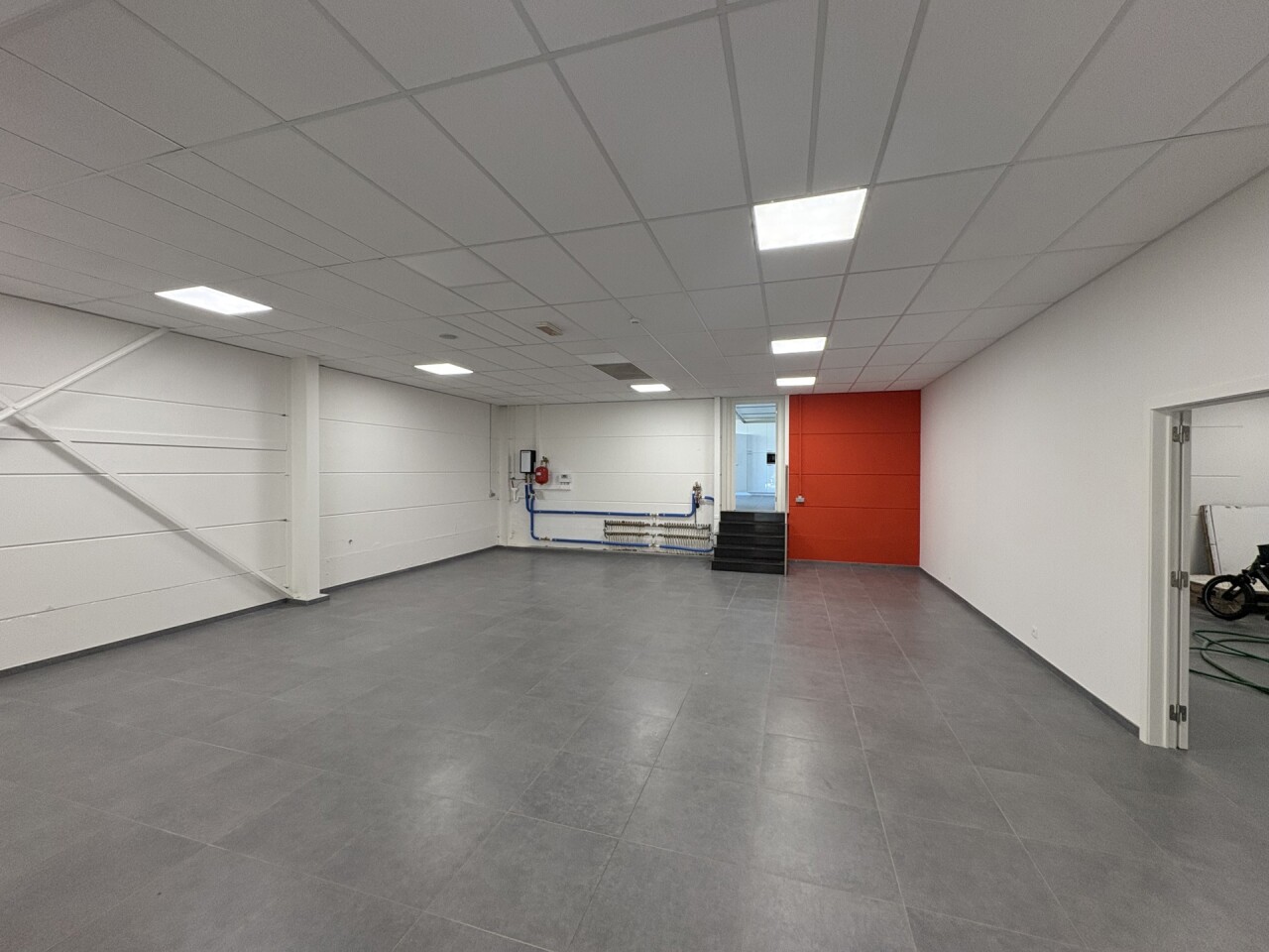De ruimte omvat een ruime toonzaal, opslagruimte met sectionaalpoort, refter en sanitair. De gyproc-wanden tussen toonzaal en opslag zijn eenvoudig te verwijderen voor een open indeling op maat van uw concept. Extra opslagruimte op -1 is beschikbaar als optie (huurprijs op aanvraag).