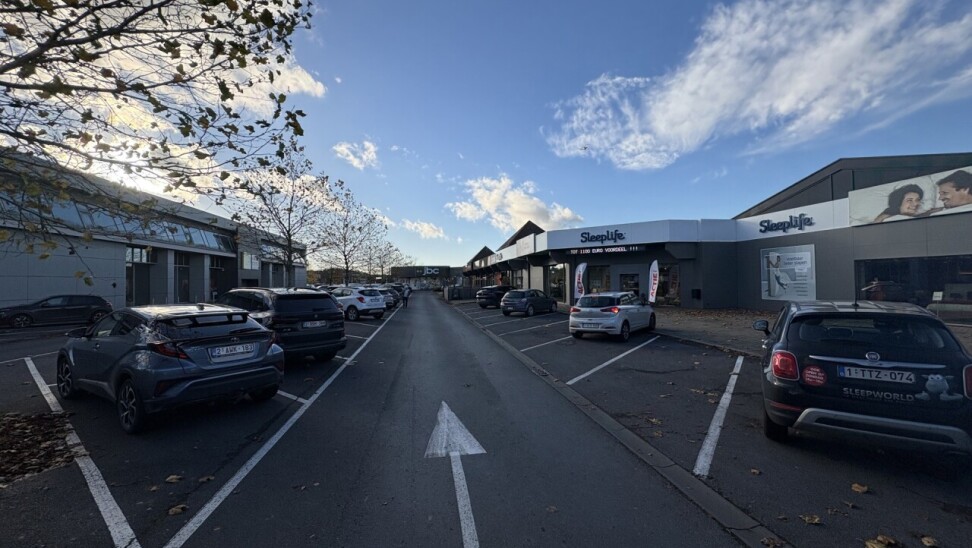 Oppervlakte winkel +/- 1.170 m². Ruime gemeenschappelijke parking van +/- 166 plaatsen.