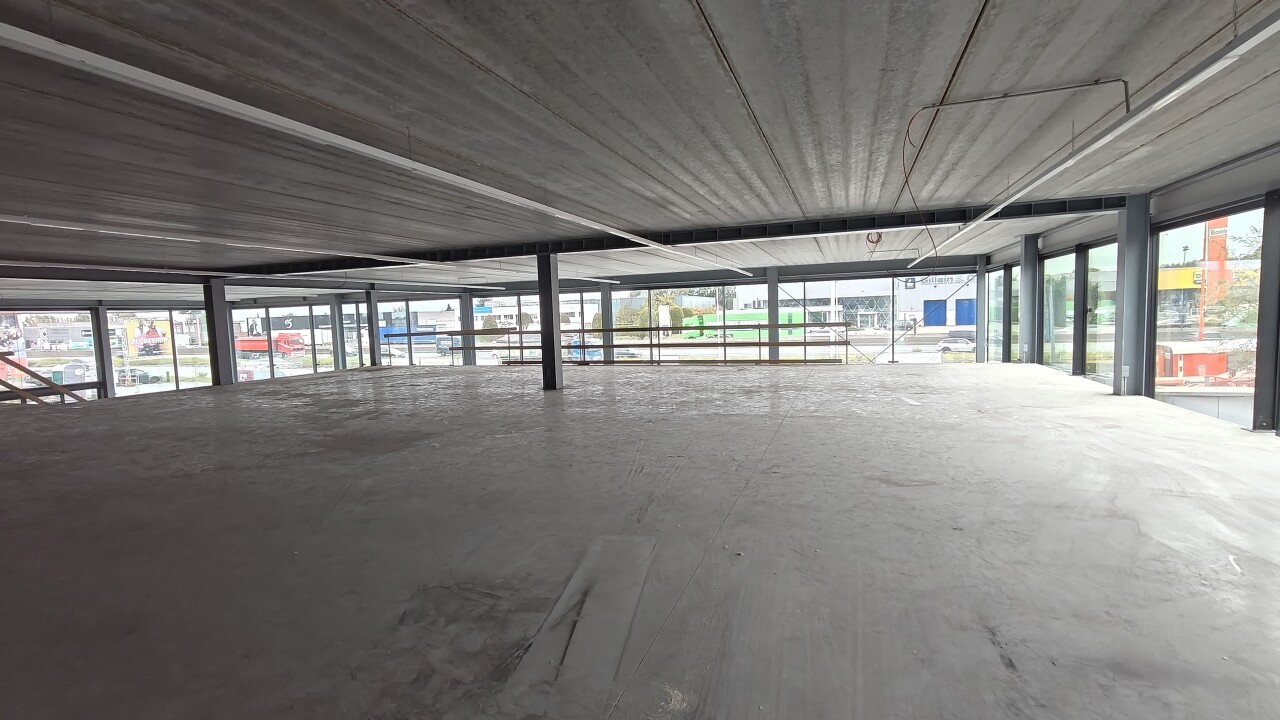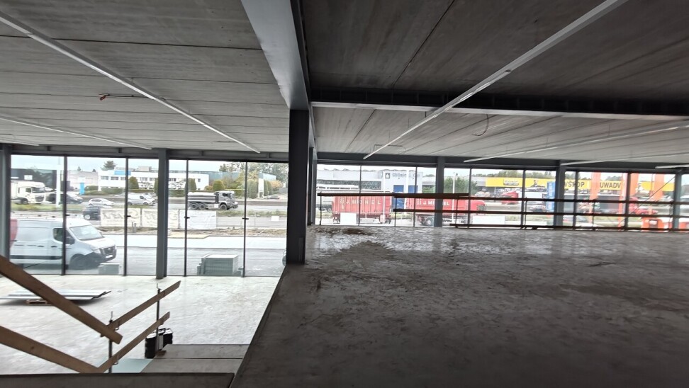 Showroom (gelijkvloers) van 615 m², ideaal voor productpresentaties of representatieve ontvangstruimte.