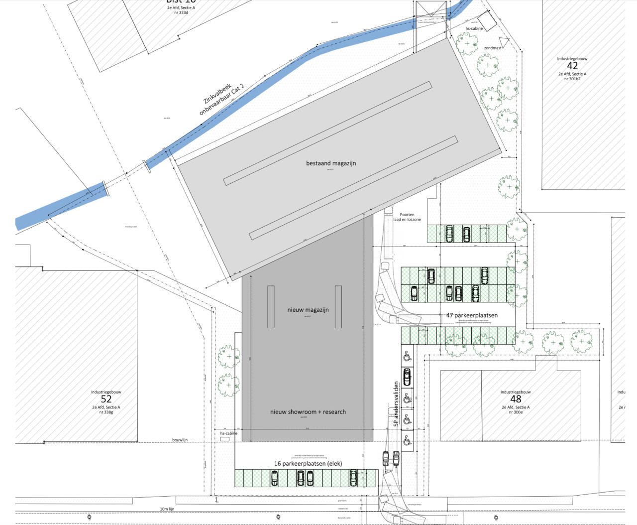 Achter het hoofdgebouw ligt een groot magazijn van maar liefst 4.425 m², opgedeeld in 1350m² nieuwbouw met 10m vrije hoogte en de resterende meters worden momenteel volledig gerenoveerd wordt en zal voldoen aan de hoogste standaarden.