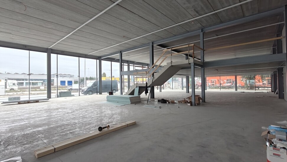 Showroom (gelijkvloers) van 615 m², ideaal voor productpresentaties of representatieve ontvangstruimte.