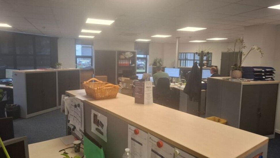 Het kantoor (ca. 375 m²) is modern ingericht en voorzien van airco, warmtepomp en LED-verlichting. De site biedt ruime parkeergelegenheid, verzorgde groenaanleg, laadpunten en een hoogspanningscabine.