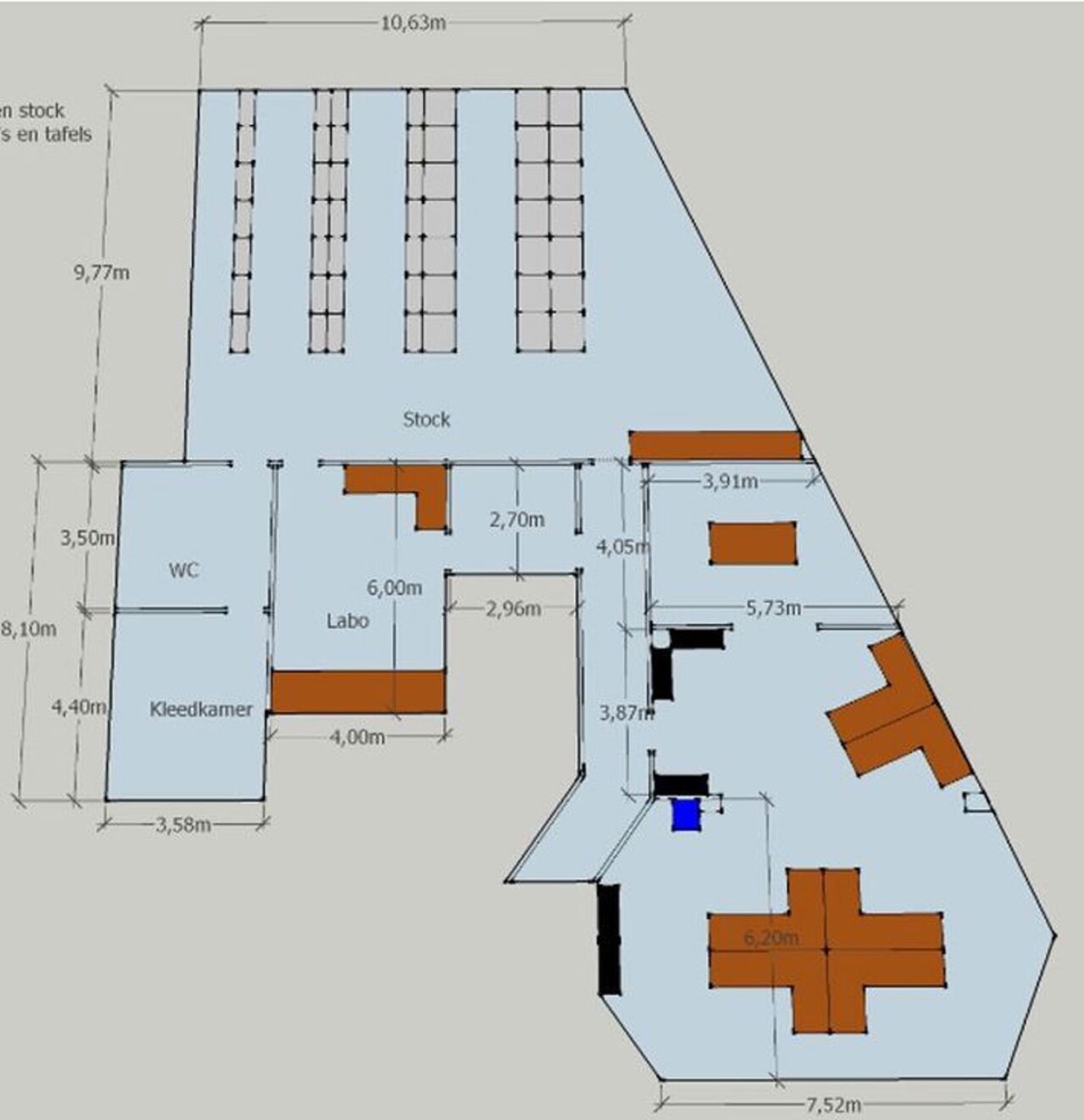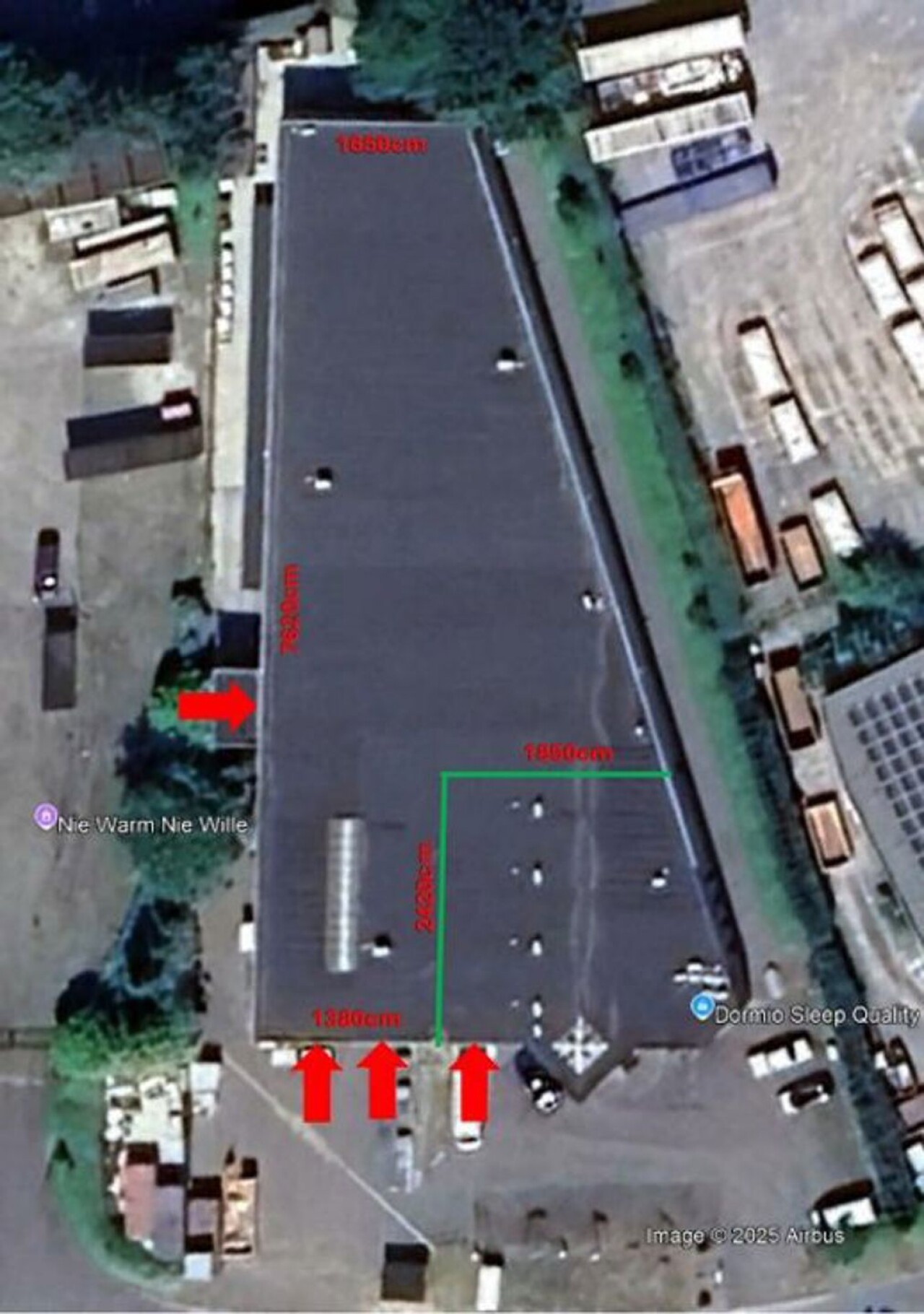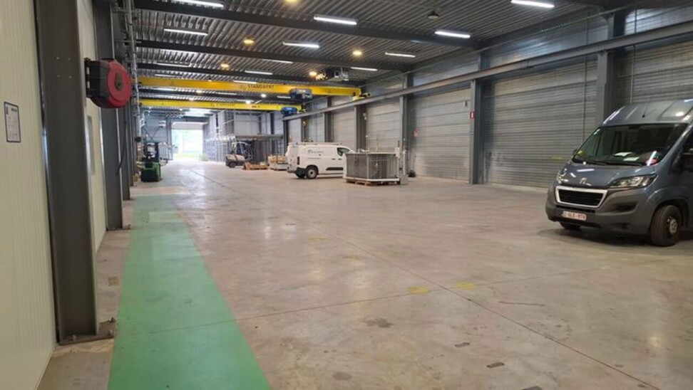 Het gebouw omvat ca. 1.650 m² opdeelbaar magazijn/atelier met een vrije hoogte van 6,7 m, polybetonvloer, daglichtstraten, LED-verlichting en 3 elektrische sectionaalpoorten. Extra troeven zijn de 2 mezzanines (240 m² en 100 m²), rolbruggen (optioneel over te nemen) en een recent warmtepompsysteem.