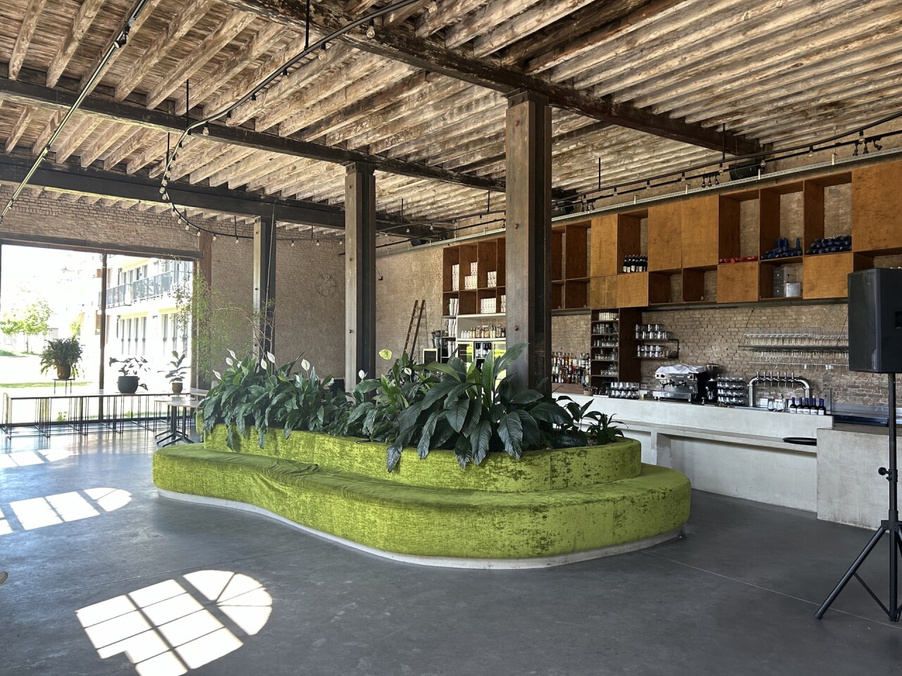 Door de enorme hoogte en verschillende raampartijen geniet deze zaak van voldoende natuurlijk daglicht.