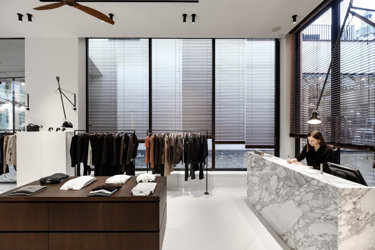 Een knappe gietvloer, nieuwe ramen en hoge plafonds zorgen voor een aangename shop ervaring.