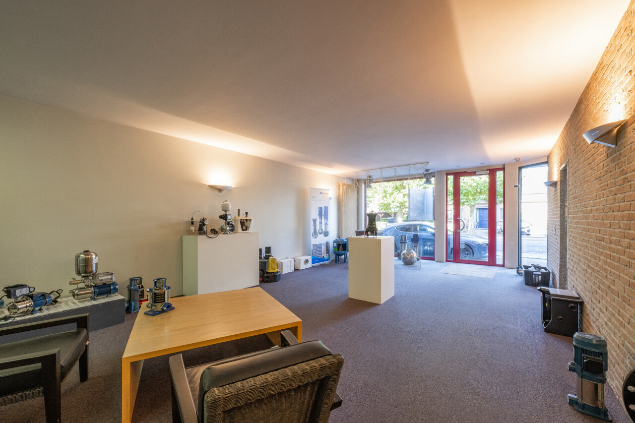 Dit veelzijdige gebouw in Boom omvat in de eerste plaats een volwaardige commerciële handelszaak met een ruim achterliggend magazijn van ca. 345 m². De handelsruimte vormt de kern van het pand en wordt functioneel ondersteund door het magazijn, ideaal voor stockage, atelier of logistieke activiteiten.
