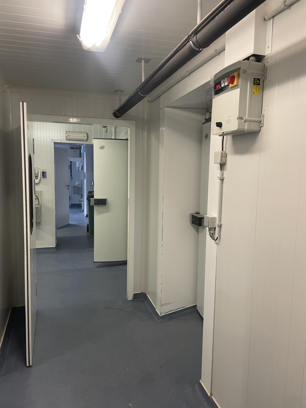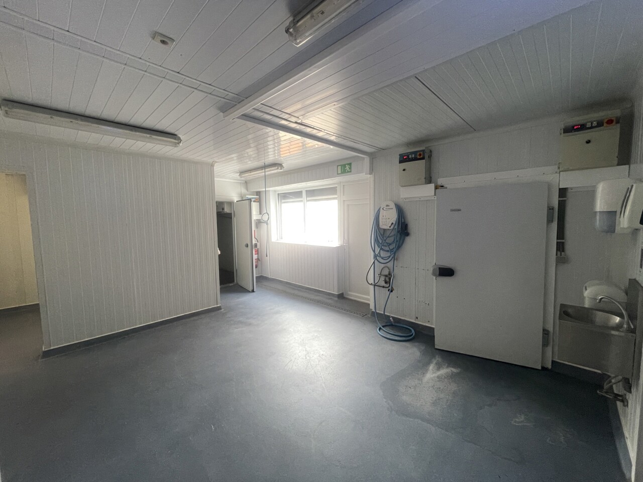 Ontdek dit veelzijdige gebouw, ideaal voor investeerders of ondernemers! Het gelijkvloers omvat ca. 475 m², momenteel ingericht als voedingsverwerkend bedrijf met koelcellen en volledige isolatie – instapklaar voor productie of stockage onder gecontroleerde temperatuur.