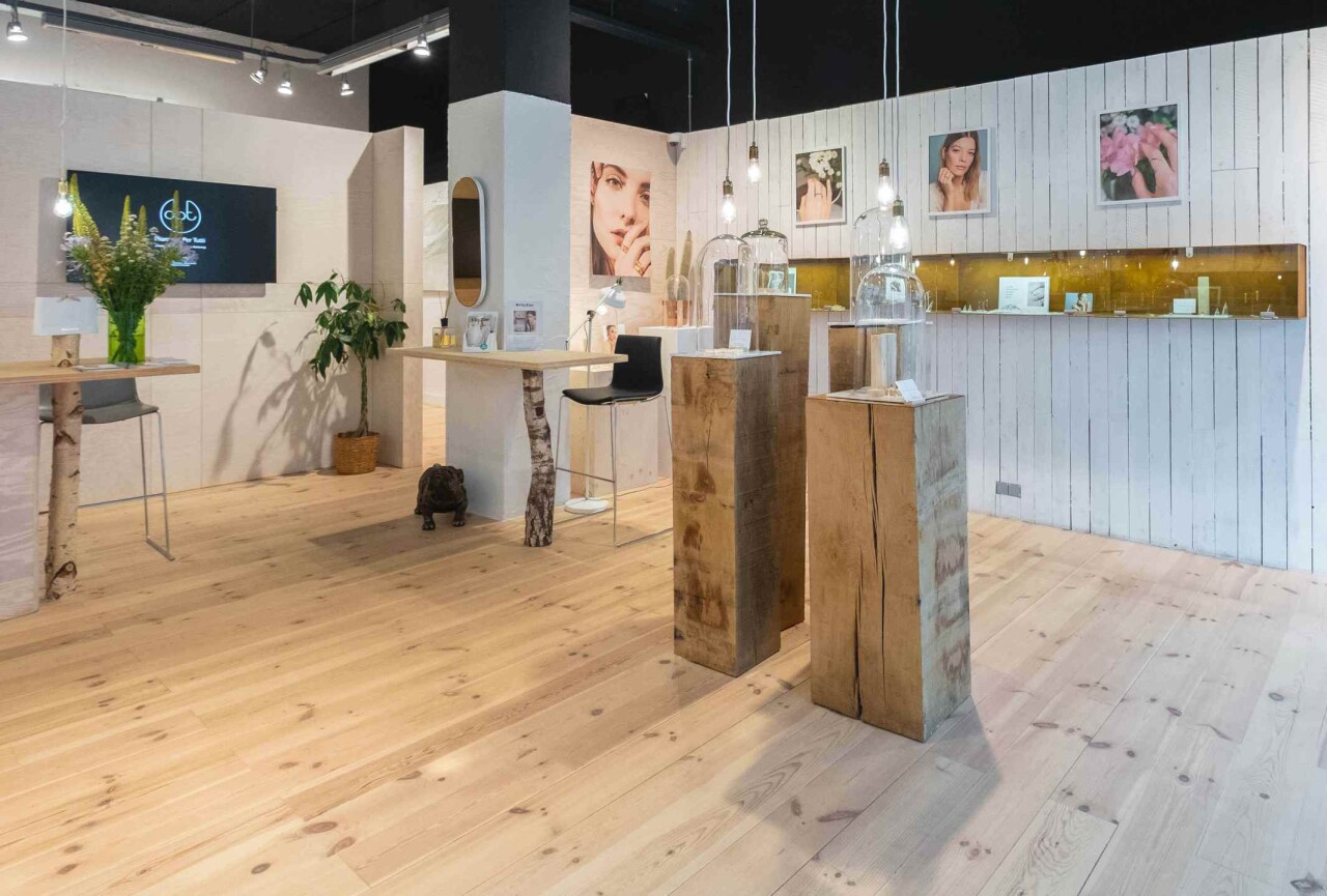 Door de brede en hoge vitrine geniet deze winkel van een uitstekende visibiliteit.