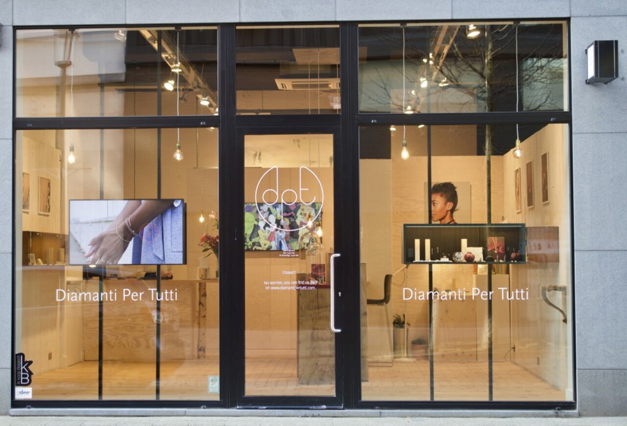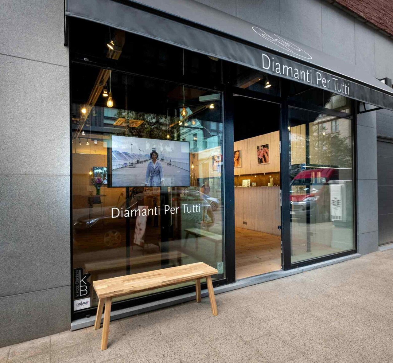 Door de brede en hoge vitrine geniet deze winkel van een uitstekende visibiliteit.