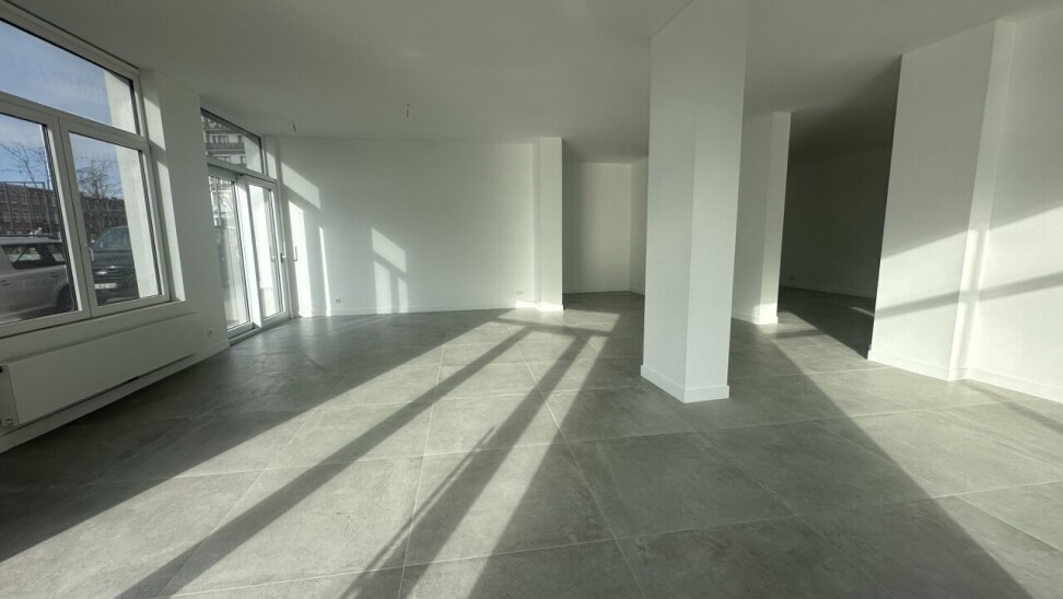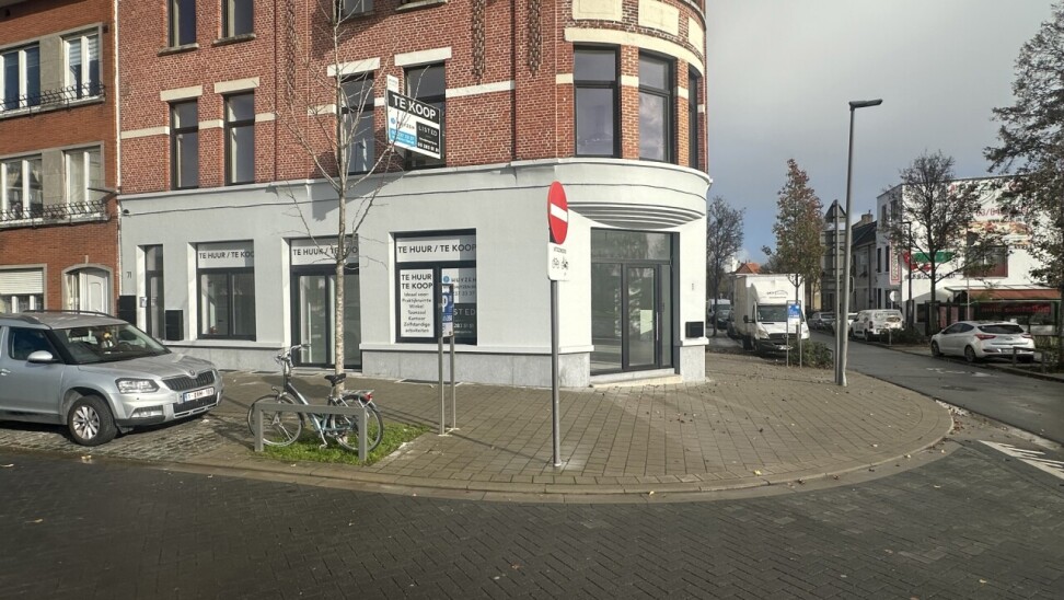 Dit handelspand bevindt zich op een uiterst zichtbare hoek in een drukke commerciële omgeving. De brede glaspartijen zorgen voor maximale exposure en trekken vanzelf de aandacht van voorbijgangers.