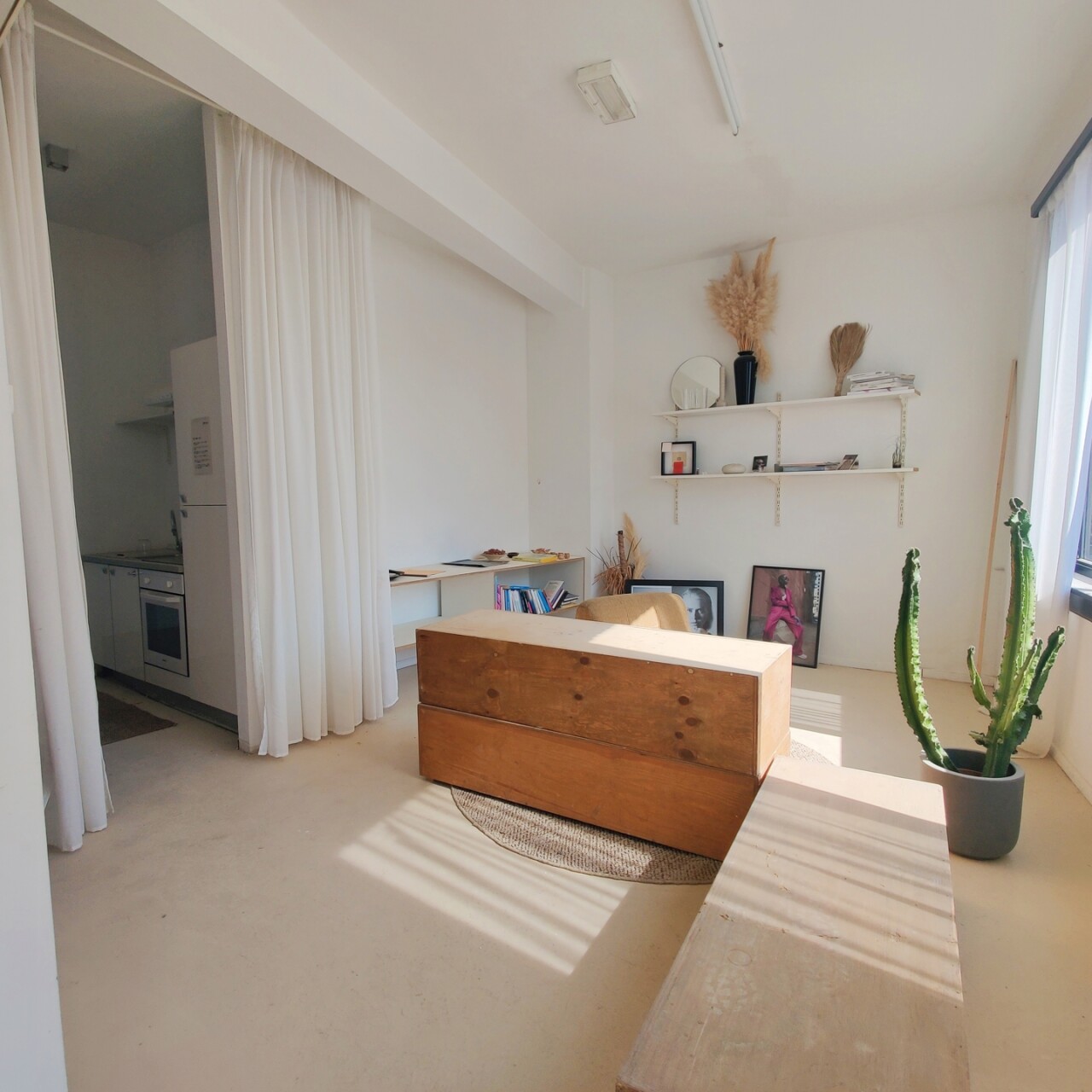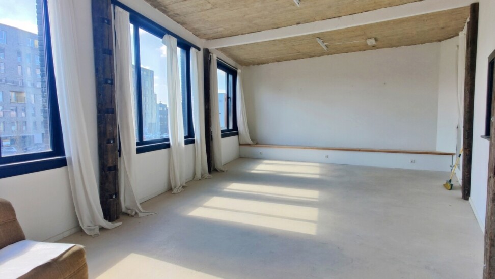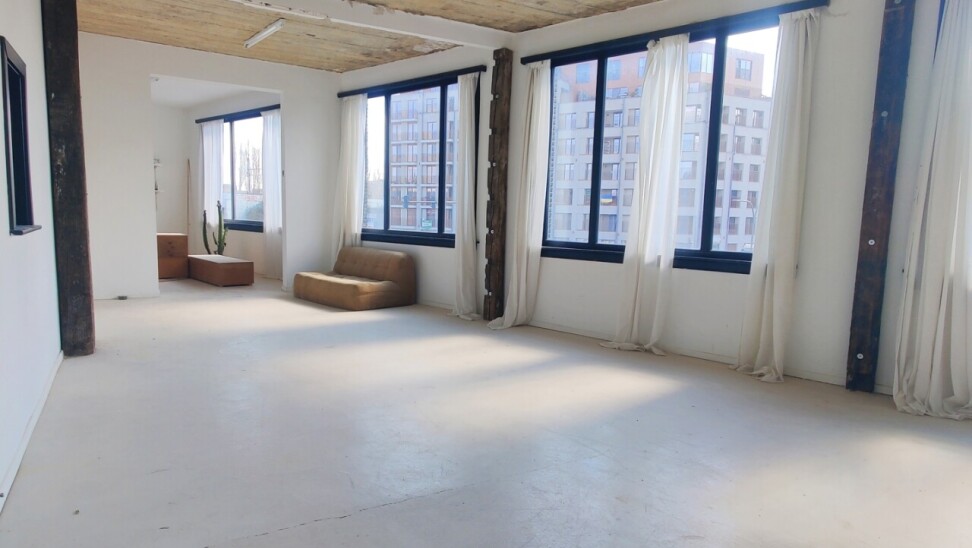 De indeling bestaat uit twee ruime open zones, die flexibel in te richten zijn als kantoor, showroom, atelier of co-working space. De grote raampartijen zorgen voor een aangename lichtinval, wat bijdraagt aan een productieve werkomgeving.