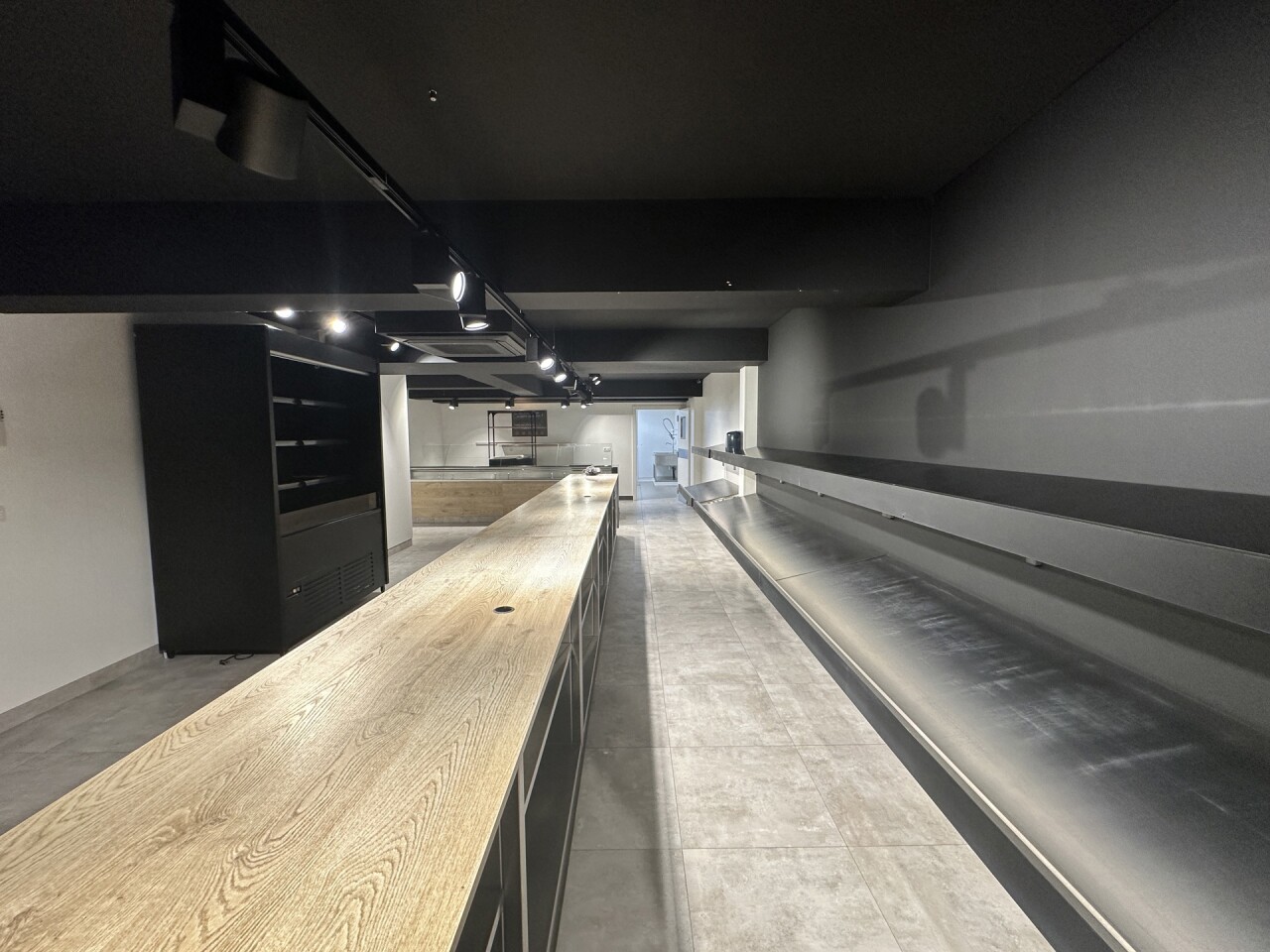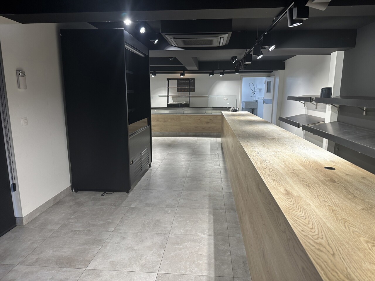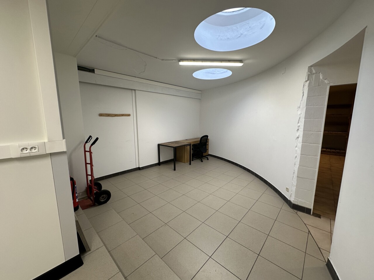 Ruim handelsgelijkvloers met veel lichtinval door een etalageraam van ca. 2,65m breed. Voorzien van een winkelruimte vooraan (ca. 18 x 5,75m) en een tweede ruimte achteraan (ca. 17 x 5,75m), momenteel opgedeeld in vijf aparte ruimtes. Achteraan bevindt zich een bergruimte van ca. 18m² met kitchenette, een wasplaats en een apart toilet. Ideaal voor winkel of kantoor.
