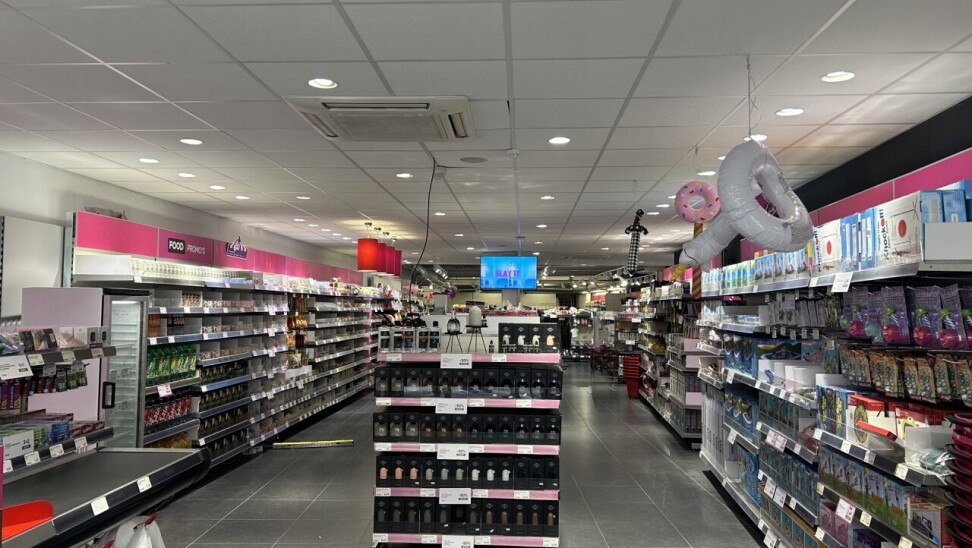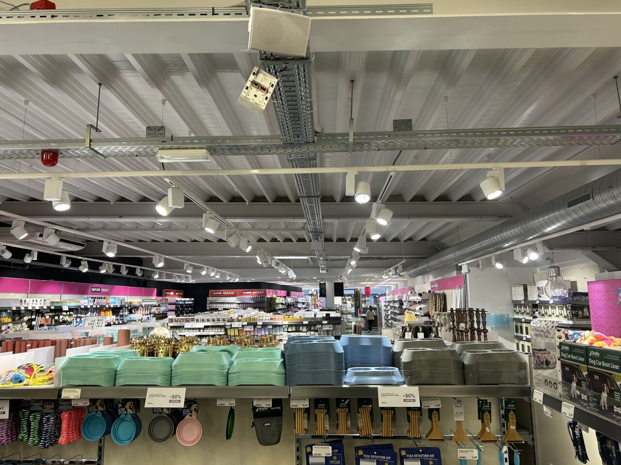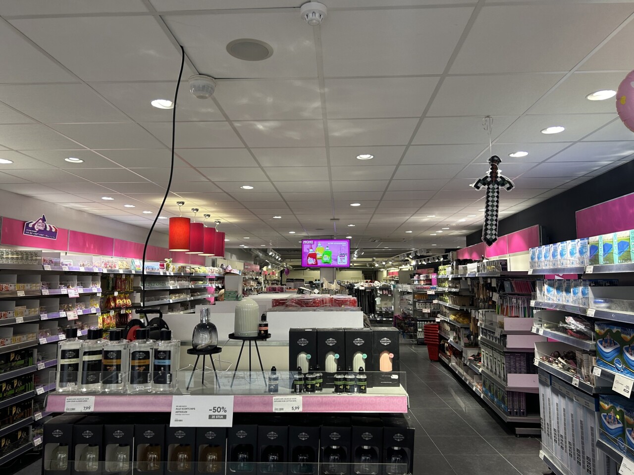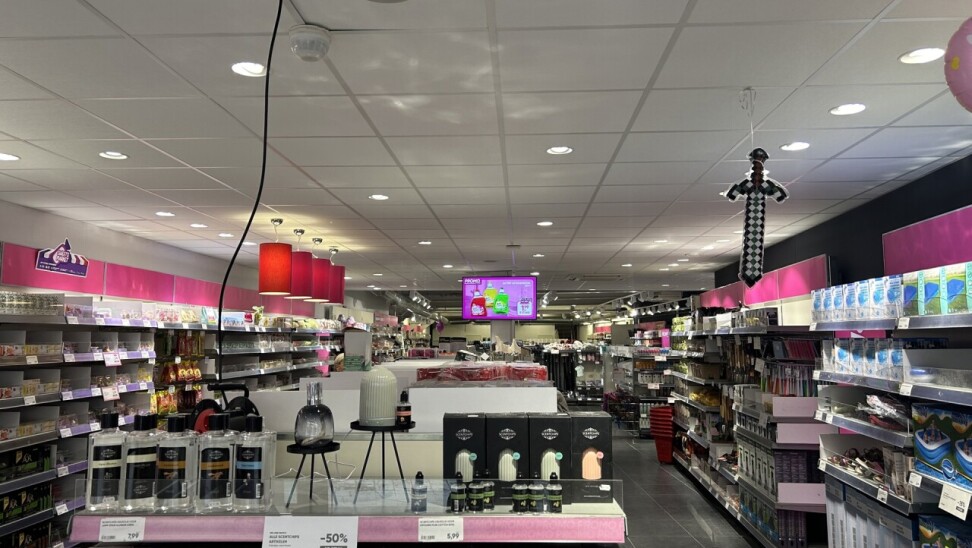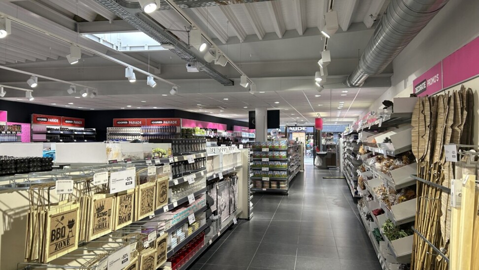In de winkel staan geen steunpalen wat zorgt voor een eenvoudige invulling.