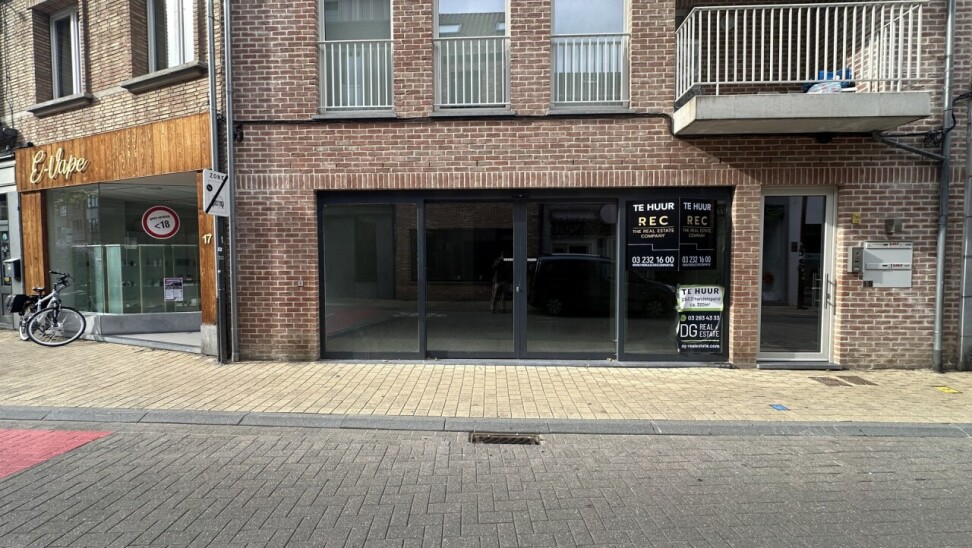De ruimte is functioneel ingedeeld en beschikt achteraan over een aparte stockageruimte, toegankelijk via een handige achteringang — ideaal voor leveringen of logistieke bewegingen.