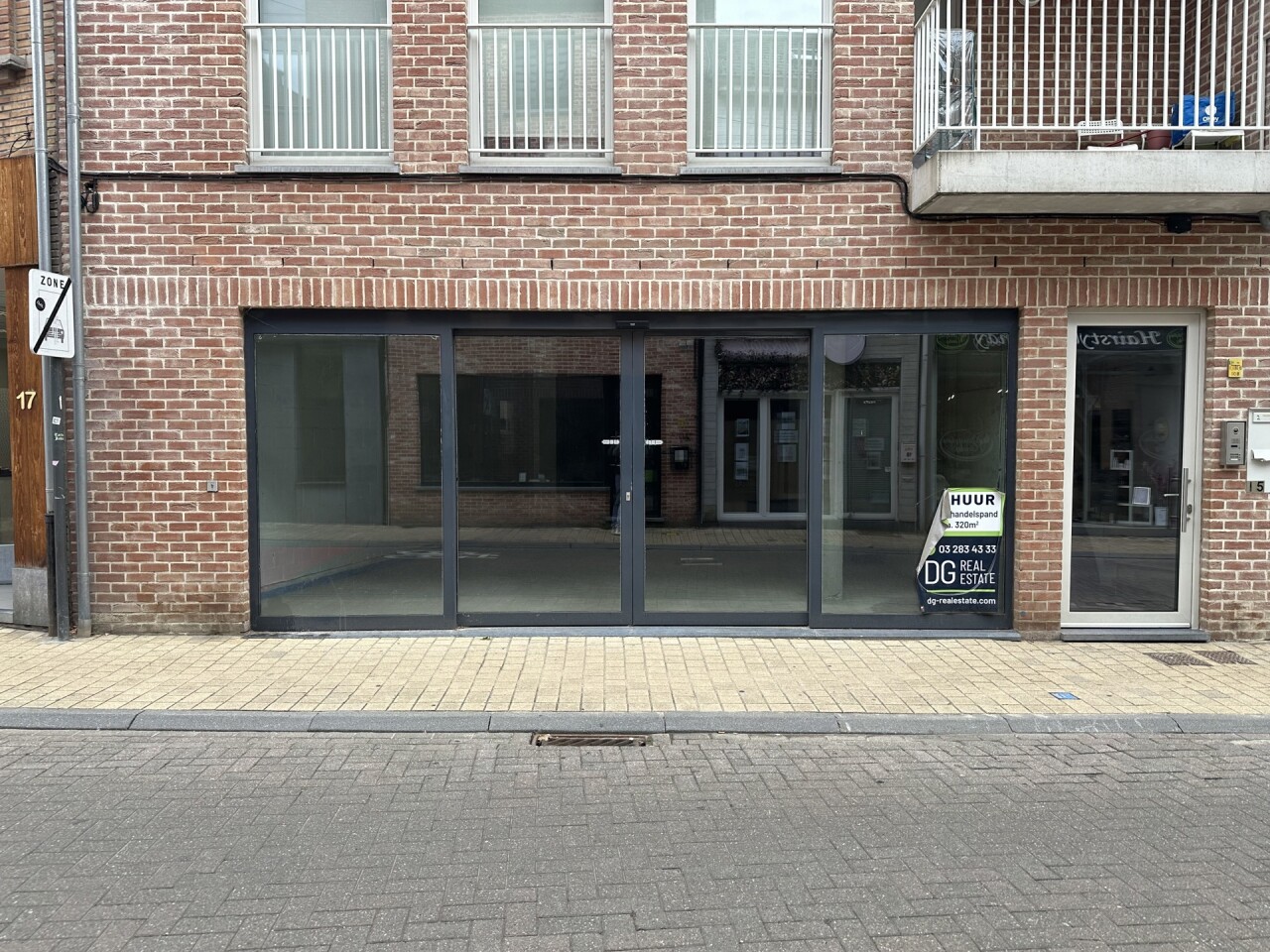 De ruimte is functioneel ingedeeld en beschikt achteraan over een aparte stockageruimte, toegankelijk via een handige achteringang — ideaal voor leveringen of logistieke bewegingen.