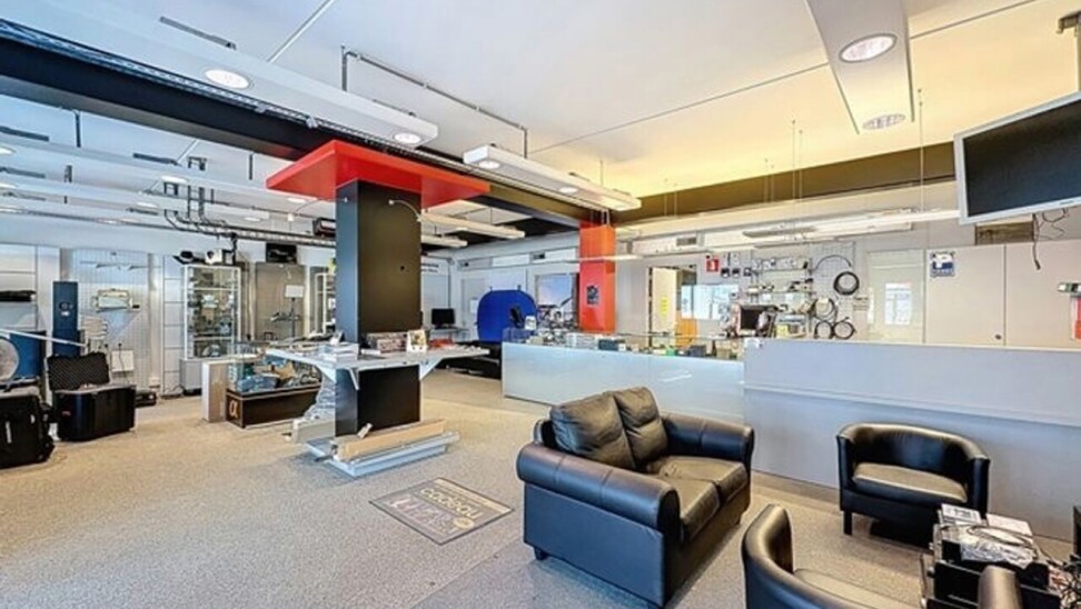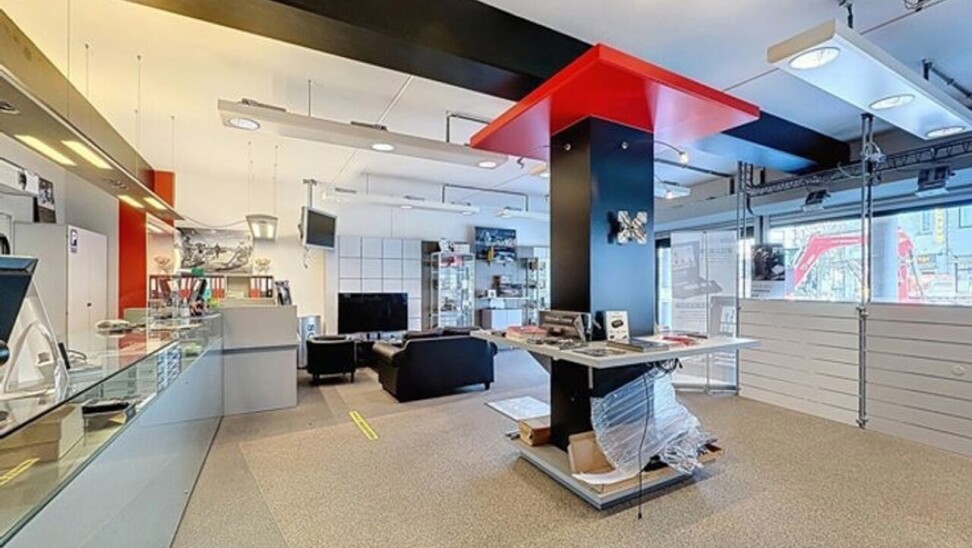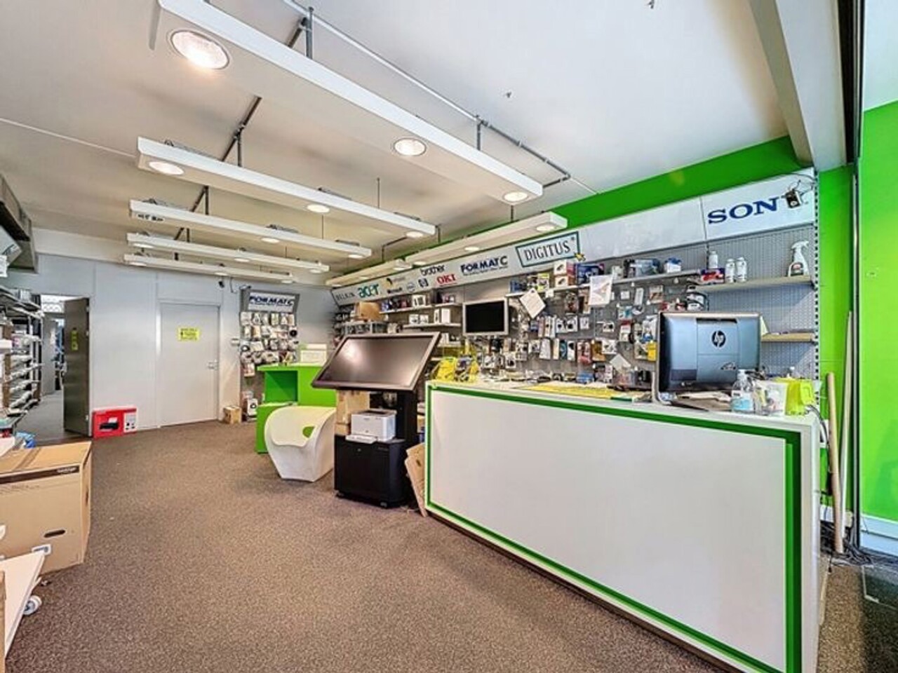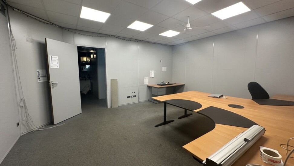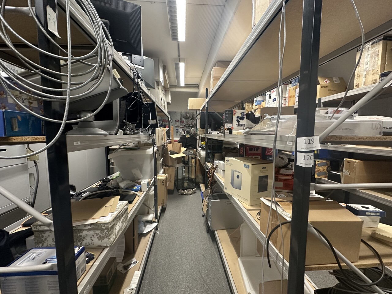 Achteraan zijn meerdere aparte ruimtes voorzien, waaronder een bureel voor administratie en een opslaggedeelte dat ideaal is voor stock of logistiek.