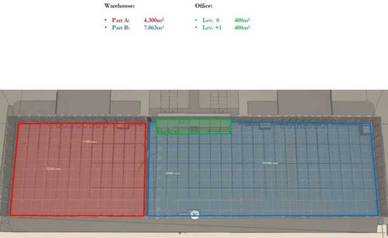 Het gebouw bestaat uit twee afzonderlijk verhuurbare delen: