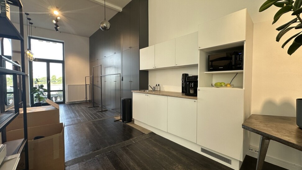 Het kantoor is volledig afgewerkt met parket en beschikt over veel ingebouwde kasten, waardoor er optimaal gebruik wordt gemaakt van de beschikbare ruimte. De indeling omvat een lichtrijke werkruimte, een kitchenette, een aparte toilet met handenwasser en een praktische technische berging.