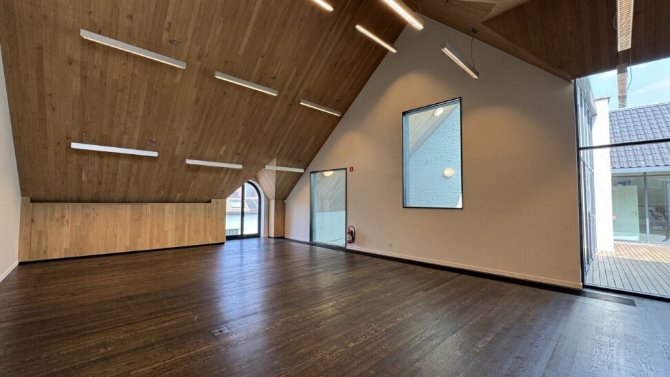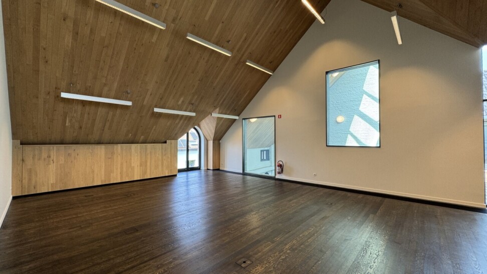 Op de derde verdieping van het iconische gebouw aan de Van de Wervestraat 20 bevindt zich deze unieke kantoorruimte/showroom van ca. 130 m². De unit geniet van een architecturale uitstraling met parket, verhoogde vloer, airco, luchtcirculatie en een eigen kitchenette (incl. vaatwasser).
