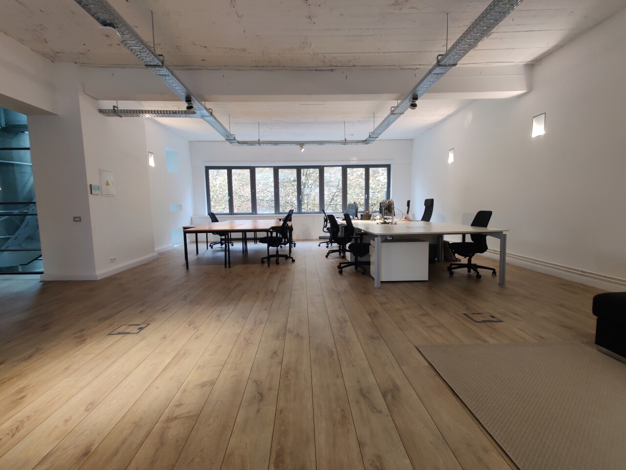 Het kantoor biedt een ruime, open landscape-indeling die eenvoudig kan worden aangepast aan je specifieke behoeften. De industriële uitstraling met betonnen gewelven en stijlvolle spots zorgt voor een moderne, inspirerende werkomgeving.