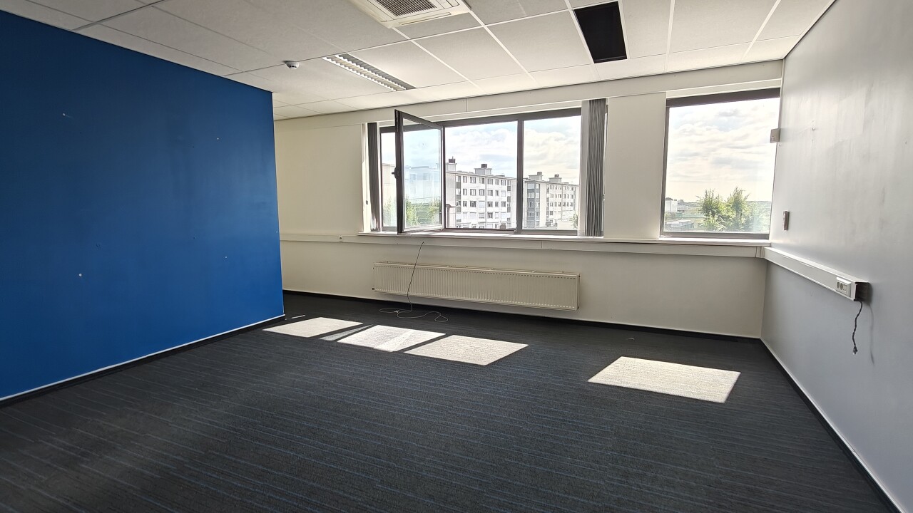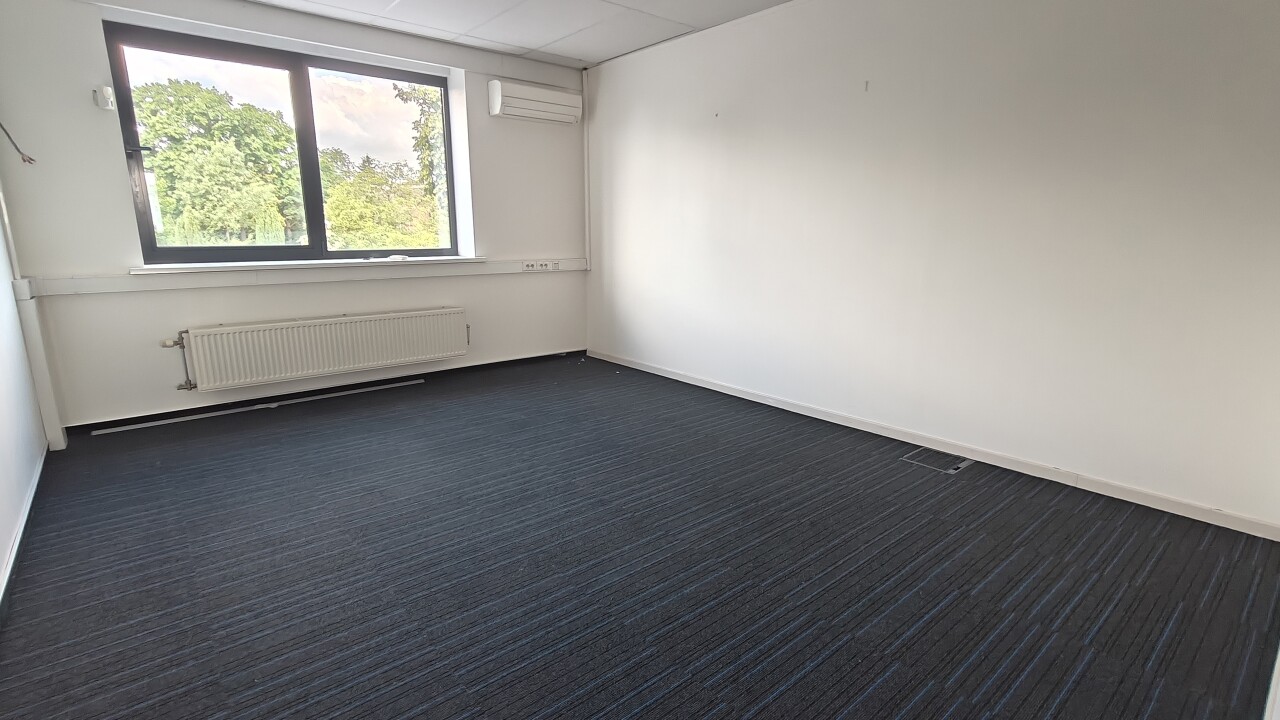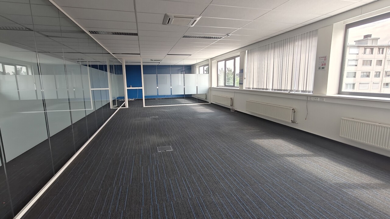 Het kantoor is ondergebracht op een aparte verdieping met eigen inkom, wat zorgt voor een autonome en professionele uitstraling. De ruimte is functioneel ingedeeld met meerdere kantoren, vergaderzones, open landschapsbureaus en sanitaire voorzieningen. Grote raampartijen zorgen voor veel natuurlijk licht en een aangename werkomgeving.