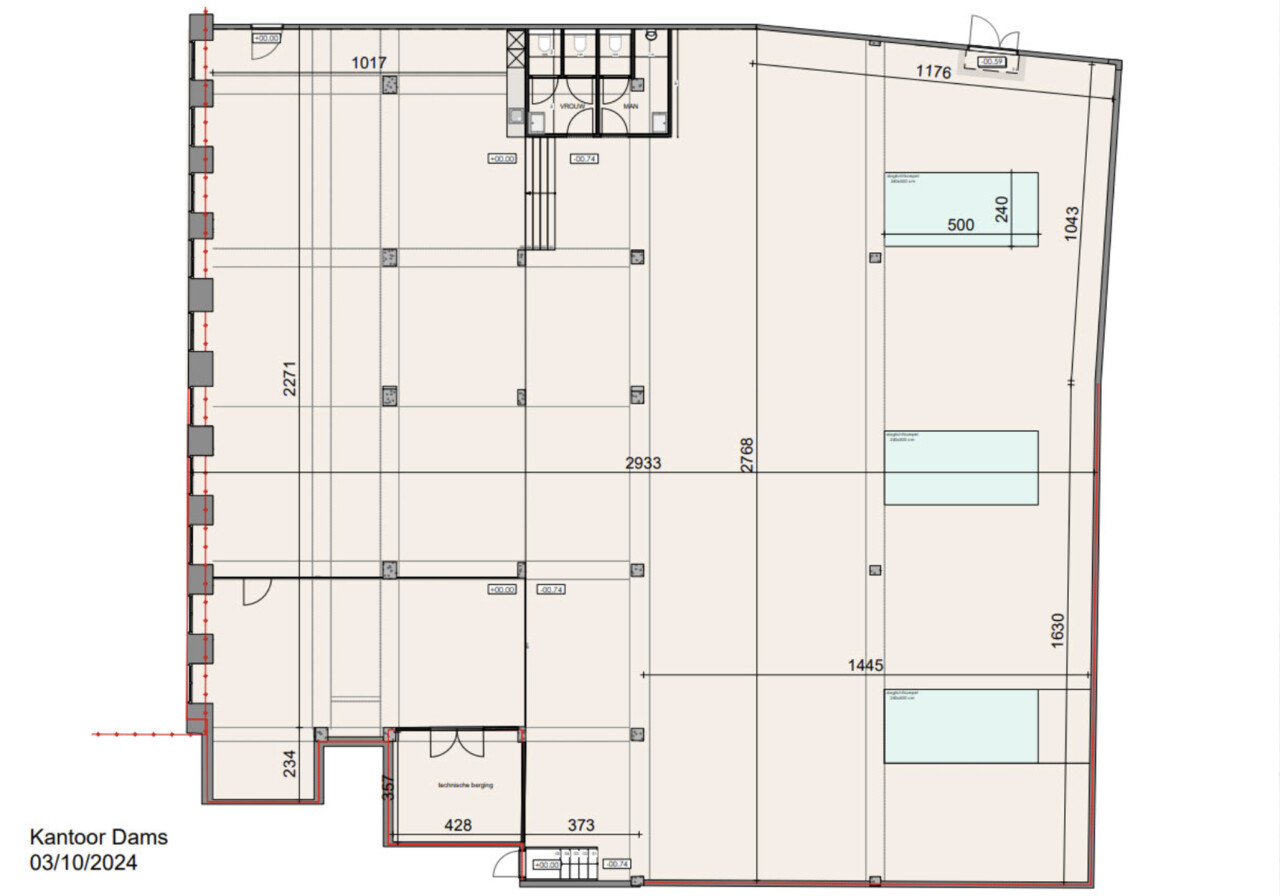 • Lichtinval via 3 lichtkoepels (240 × 500 cm)