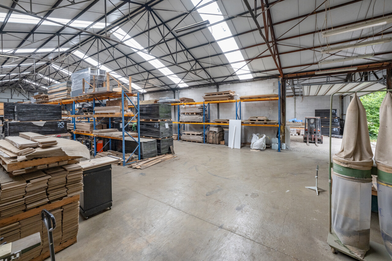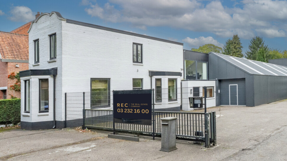 Ruim bedrijfsgebouw te koop – 2.500 m² grond met 1.800 m² werkplaatsen en kantoren/woonfunctie in Kalmthout
