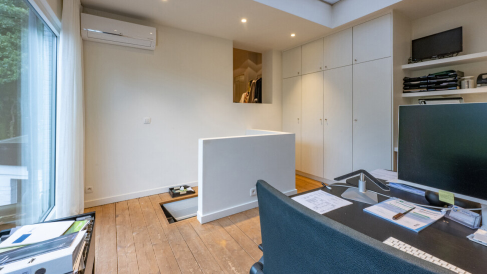 De kantoorruimte kan zowel professioneel als residentieel worden benut. Momenteel zijn er een slaapkamer en een dressing aanwezig, wat het geheel ook geschikt maakt voor een gemengd gebouw (werken en wonen combineren).