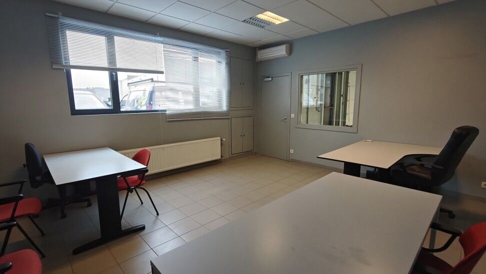 Elke unit is voorzien van een sectionaalpoort en vormt samen een flexibel geheel dat eenvoudig kan worden opgesplitst of gecombineerd naargelang de noden. Daarnaast is er een compacte kantoorhoek met douche en sanitair, ideaal voor dagelijks gebruik of personeel ter plaatse.