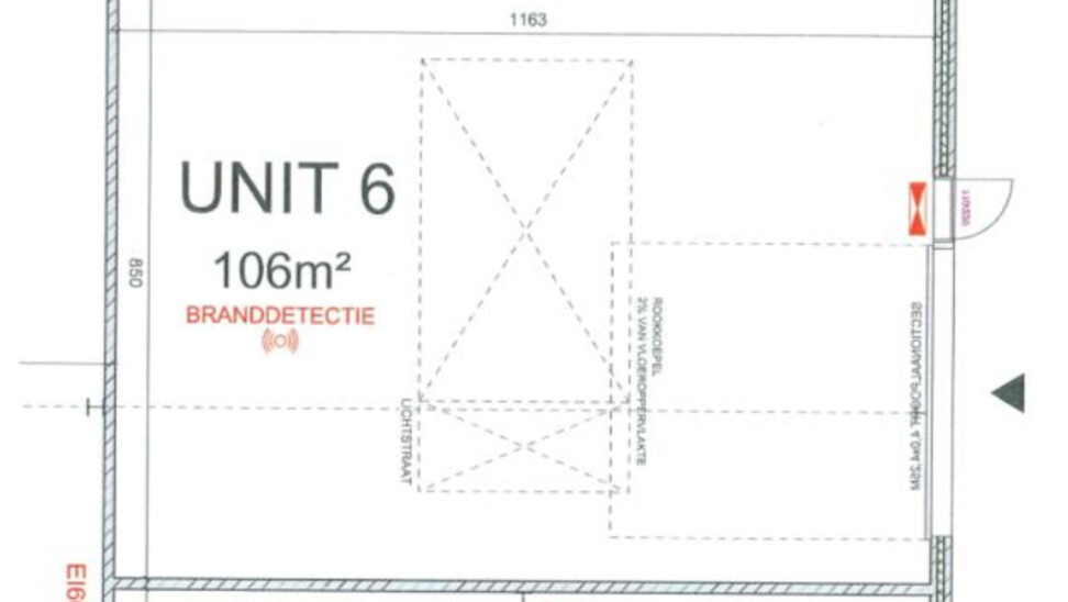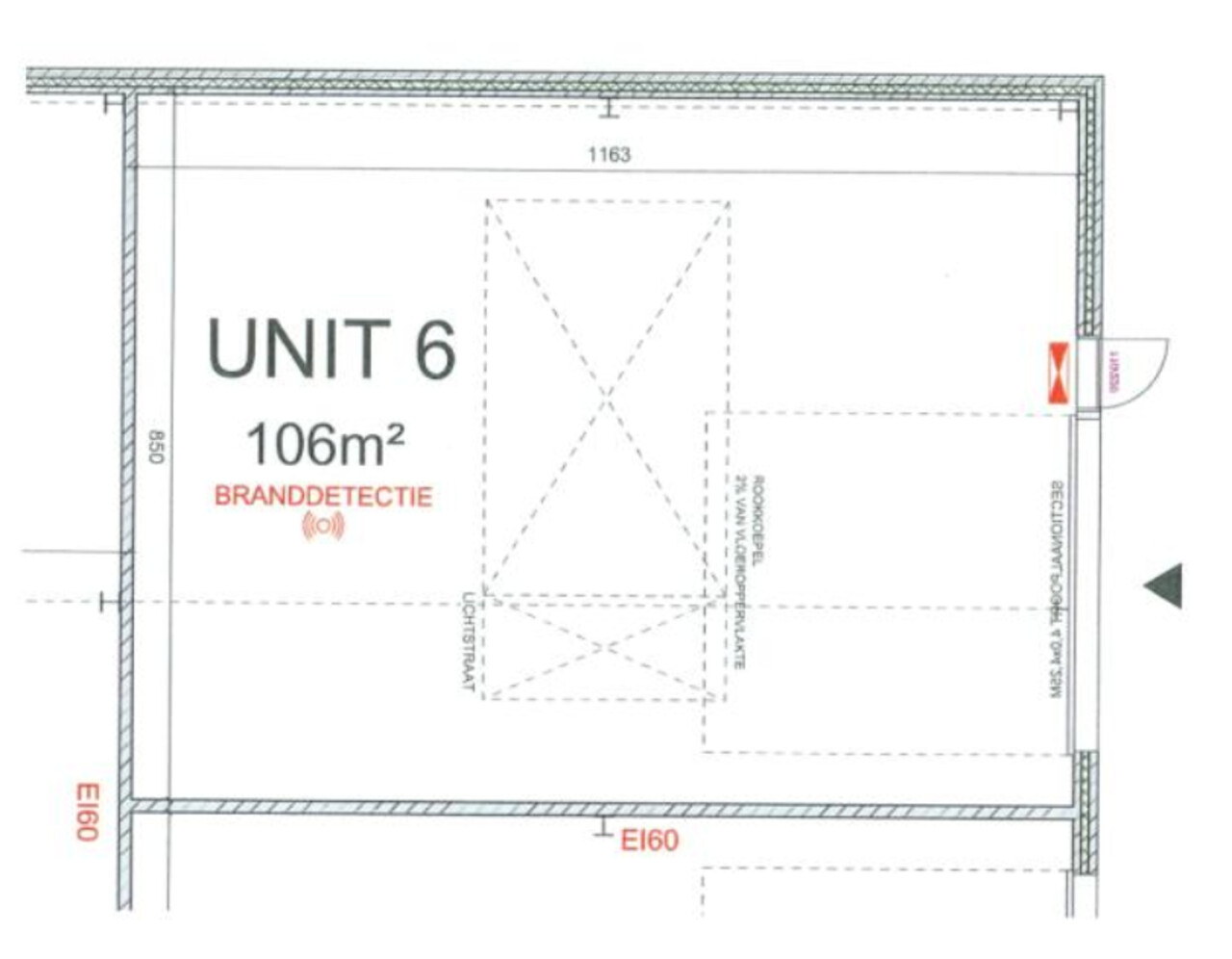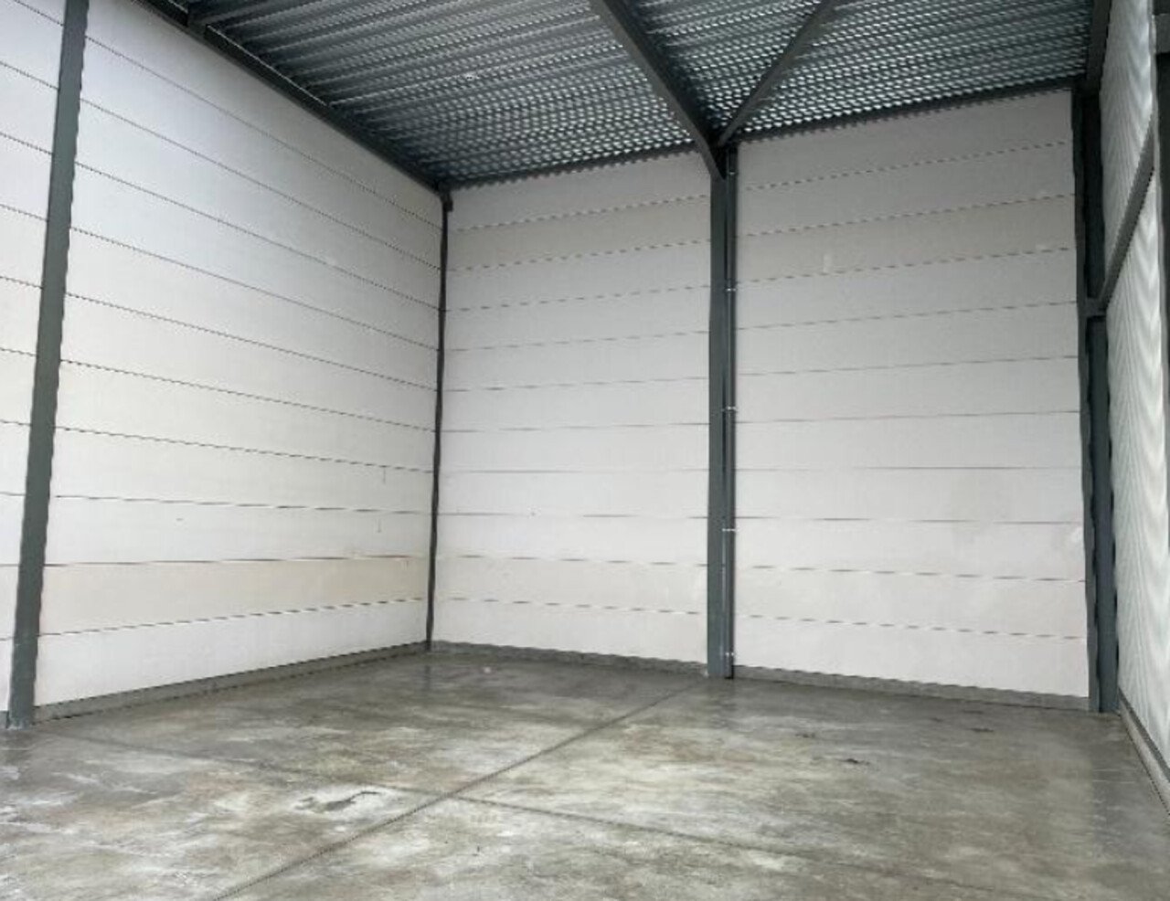 De unit omvat ca. 106 m² magazijnruimte en beschikt over 1 privatieve parkeerplaats. Daarnaast is de ruimte momenteel uitgerust met een beperkte mezzanine in houtstructuur, wat extra opslagmogelijkheden biedt.