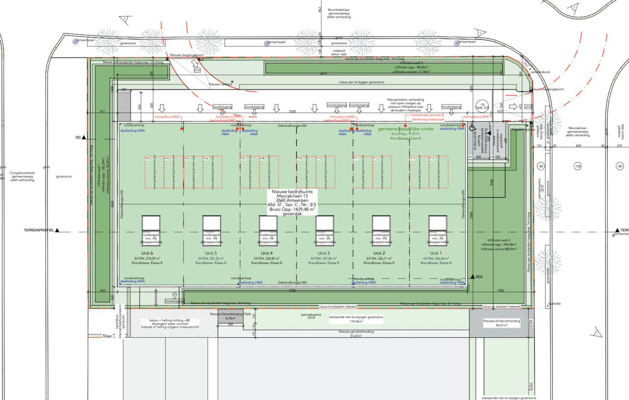 Deze moderne ontwikkeling bevindt zich op de Maccabilaan in Hoboken, vlak bij de ring van Antwerpen (R10) en op enkele minuten van de A12 en E17. De site ligt in een bedrijvige KMO-zone, goed ontsloten voor zowel personen- als vrachtverkeer. Met vlotte verbindingen richting centrum Antwerpen en de Antwerpse ring, is dit een uitstekende uitvalsbasis voor bedrijven die actief zijn in logistiek, productie, bouw of diensten. Openbaar vervoer op wandelafstand.