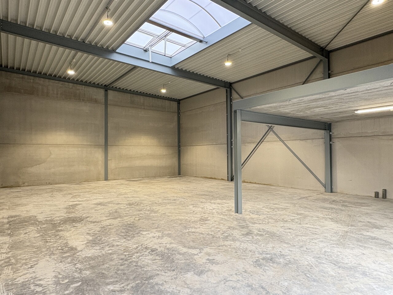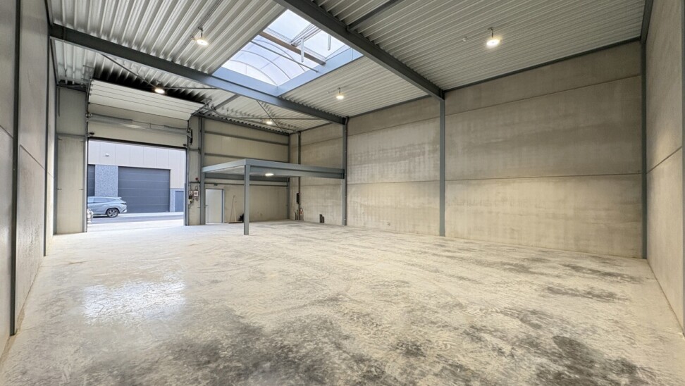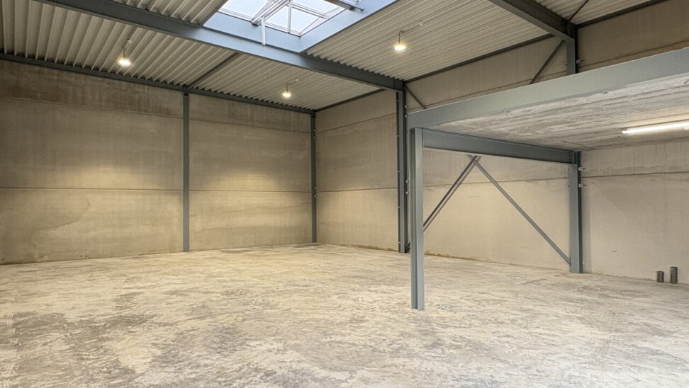 De unit bestaat uit ca. 216 m² magazijn/opslag op het gelijkvloers, aangevuld met een mezzanine van ca. 30 m², ideaal voor extra stockage, archief of ondersteunende werkruimte. De moderne en uniforme uitstraling van het park zorgt voor een professionele werkomgeving, geschikt voor opslag, werkplaats of lichte productie.