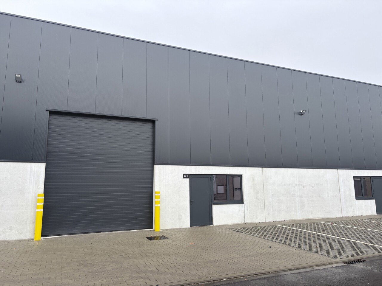 Elke unit is voorzien van een staalstructuur, grijs-alu buitenschrijnwerk en minimaal één sectionaalpoort. De gevels bestaan uit isolatiepanelen in een donkergrijze kleur, en de scheidingswanden zijn uitgevoerd in betonnen panelen met een brandwerendheid van EI60 of EI120. De vloeren zijn afgewerkt met een glad gepolierde betonlaag, en de tussenvloeren hebben een nuttige belasting van 6 kN/m².