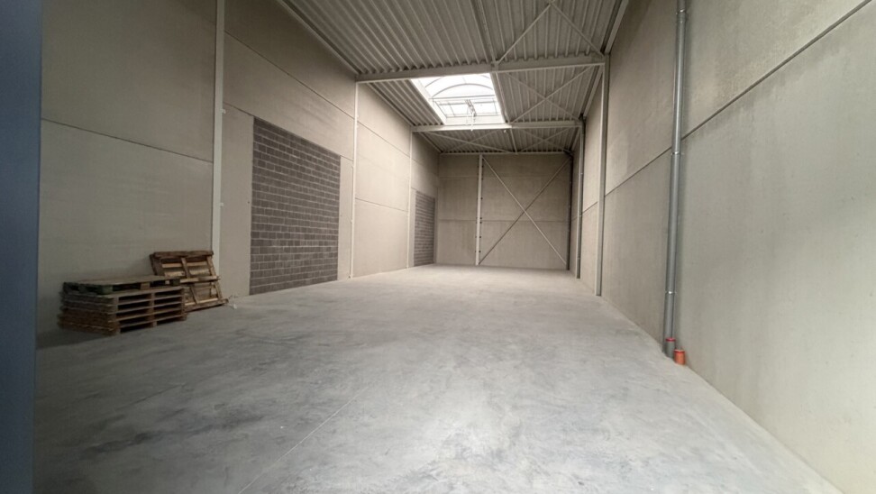 Deze functionele bedrijfsruimte beschikt over een duurzame betonvloer, een sectionaalpoort, een praktische inkom en een voorbereide raampartij voor een toekomstige mezzanine (door uzelf te voorzien). De vrije hoogte van 7 meter biedt u maximale indelingsvrijheid.