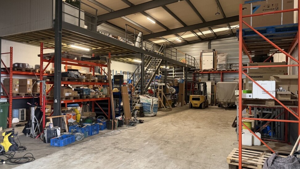 De hal heeft een bruto oppervlakte van ±226 m² met daarbovenop een mezzanine van ca. 60 m² – perfect voor extra opslag, stockageruimte of organisatie van goederen.